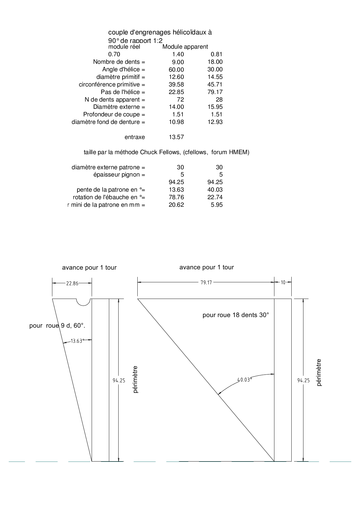 en modifiant l'angle d'helice a 63° et 27 ° on obtient l'entraxe de 14 recherché