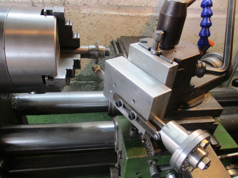 tu positionnes l'ébauche pour que le milieu de l'ébauche soit bien centrée sous l'outil dans l'axe du tour, par exemple avec un réglet comme pour régler la hauteur de l'outil de tour) . La pointe d'une dent de la fraise touche juste le milieu de l'ébauche, l'axe vertical devant passer par le milieu de l'ébauche, la dent la plus basse et coupe l'axe du tour. en insérant un réglet coincé entre l'ébauche et la dent, en bougeant le trainard tu règles l'horizontalité du réglet, c'est suffisamment précis. il ne reste plus qu'a régler la profondeur de passe.