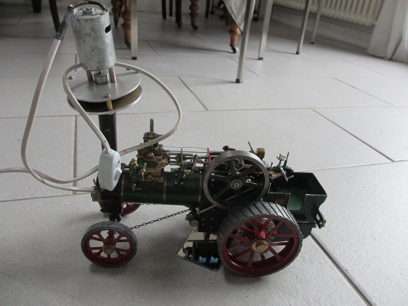 J’ai tout remis en état, et mon petit tracteur fonctionne bien avec la vapeur, mais est difficile à maîtriser, le pilotage n’est pas facile sur ma petite terrasse, sauf à faire des ronds un peu tristounets ;