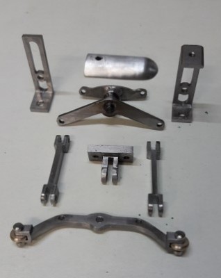 les pièces de la distribution : le basculeur à roulette est commandé par une palette solidaire de la tige de piston