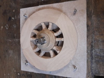 le moyeux avec sont trou fait avec une broche maison