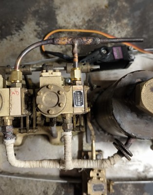 Le corps de la vanne est en bronze et les raccords sont en laiton, impossible de souder avec des baguettes pour souder le cuivre (j'ai oublié le mot) donc on a fait avec de l'étain, je verrais ce que ça donne.