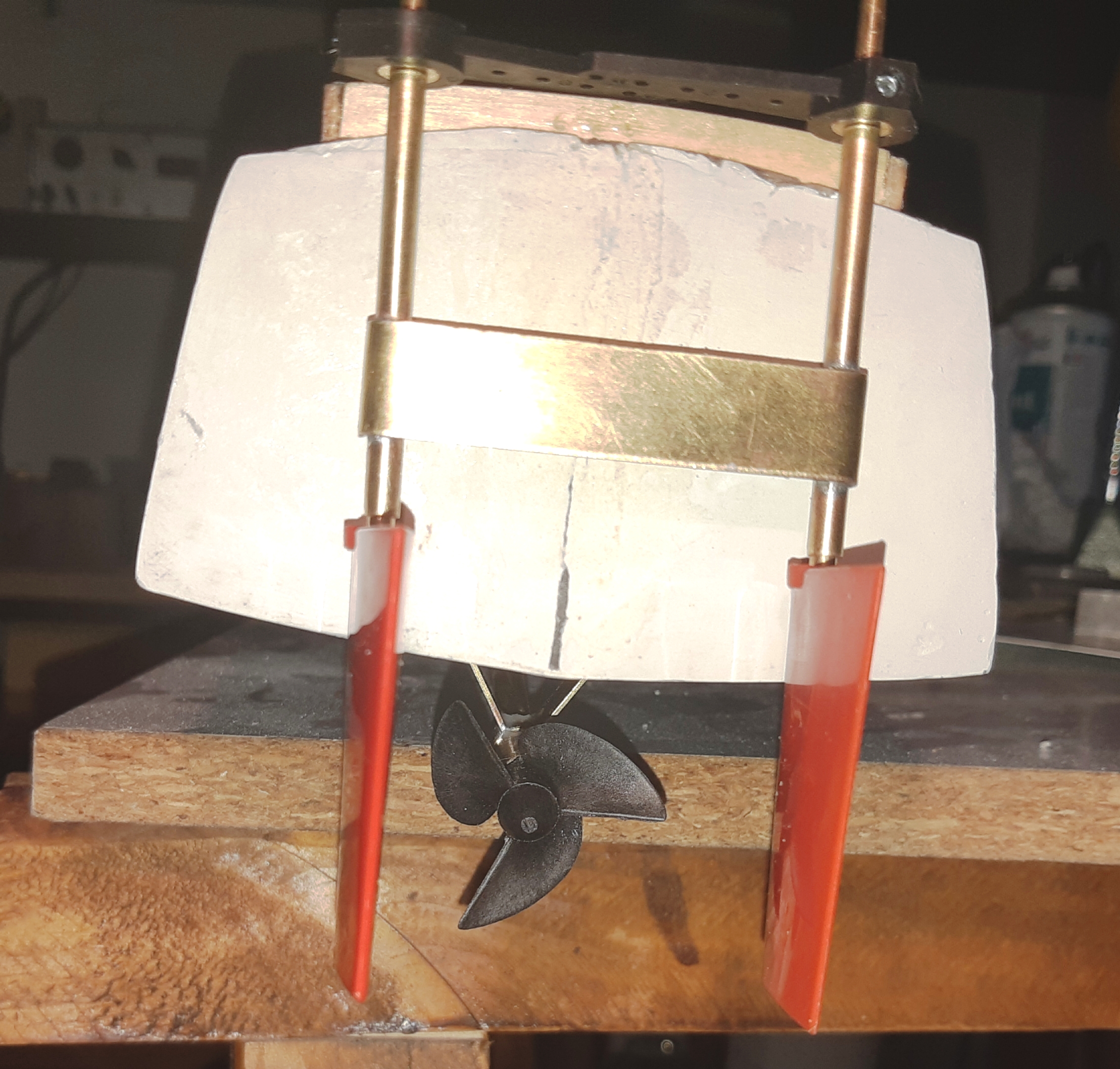 reste à construire la ligne d'arbre de l'hélice et le gouvernail. :D