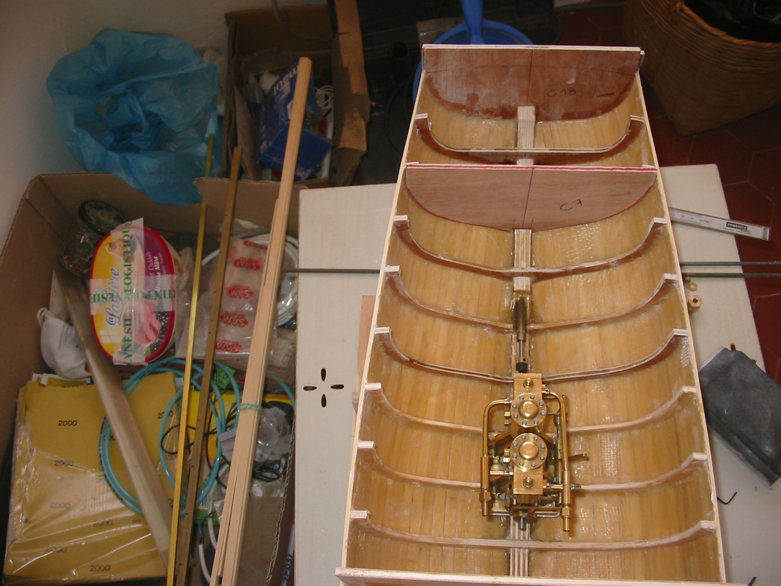 Quelques photos du début de sa construction. Je souhaiterais retrouver le plan de cette chaloupe, pour pouvoir bien disposer la chaudière, le tank à gaz, etc.. et avoir vos conseils sur le sujet.