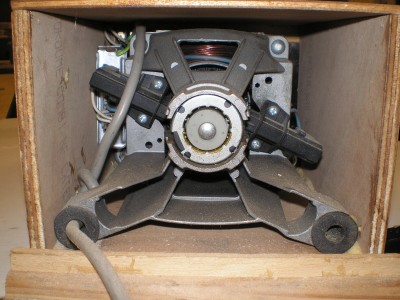 Un moteur de machine a laver avec un train d'une fraise pour les encoches et d'une scie pour couper a bonne longueur.