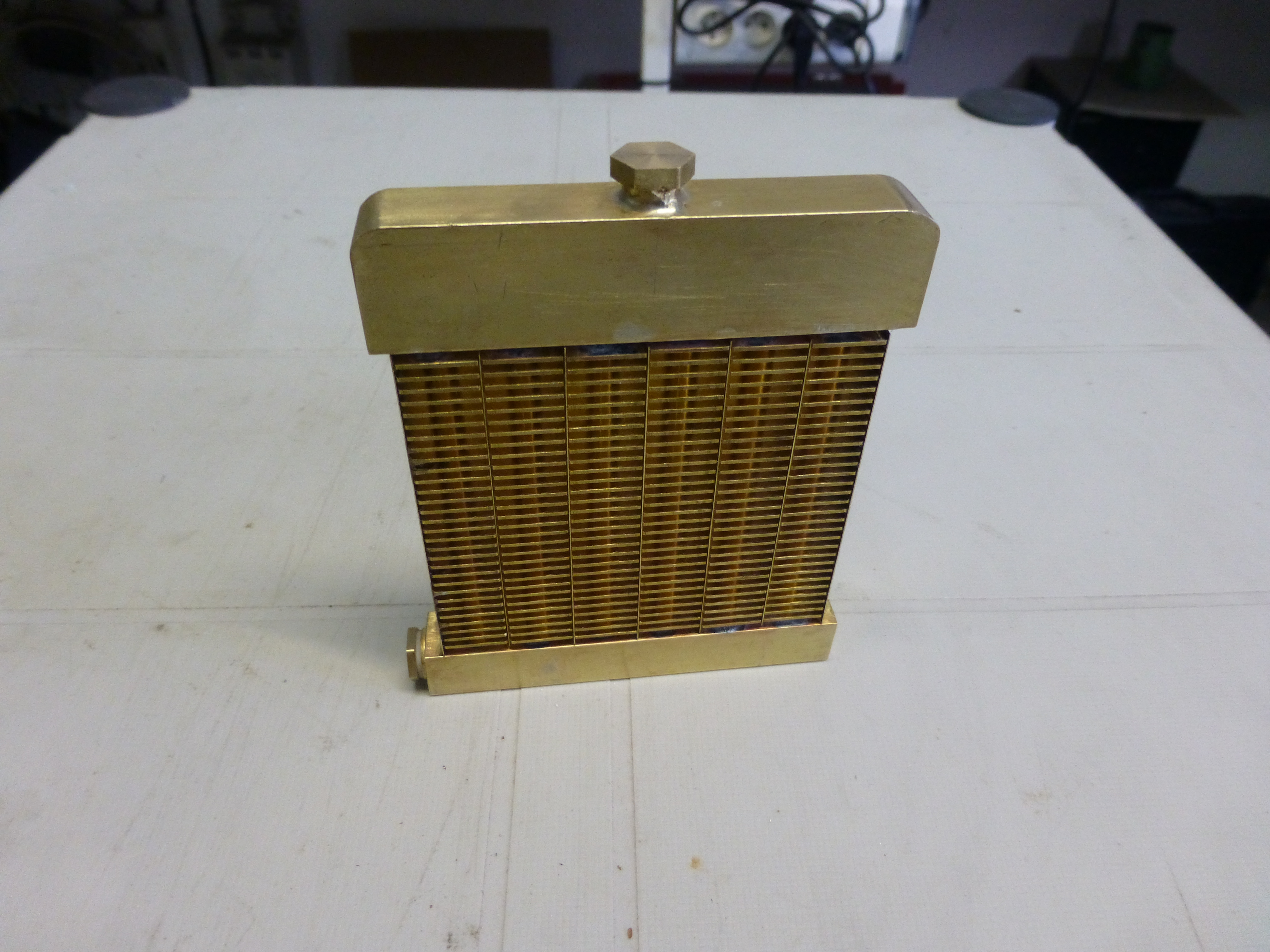 la suite avec le ventilateur découpé dans une plaque laiton épaisseur 0,7 puis arrondi des pales formé a l'aide d'un rond
