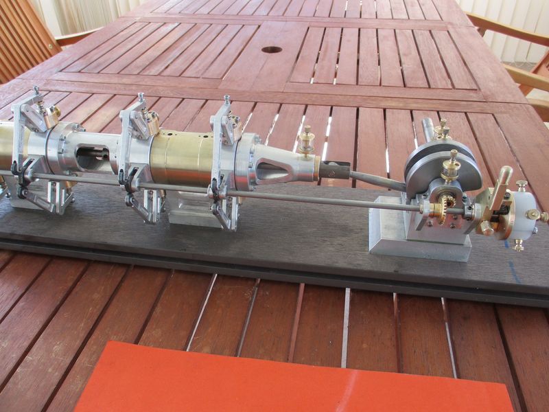beau modèle en construction, curieuse machine ! 2 cylindres double effet, l'ordre d'allumage ?
