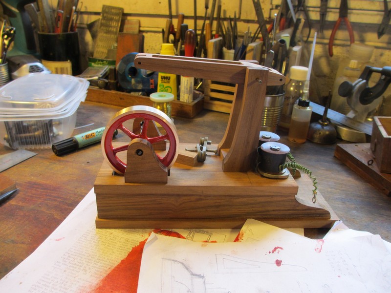 donc je me suis lancé pour changer dans un petit moteur à balancier en bois (des vieilles planches de noyer sauvées d'un bâti d'horloge vermoulu.