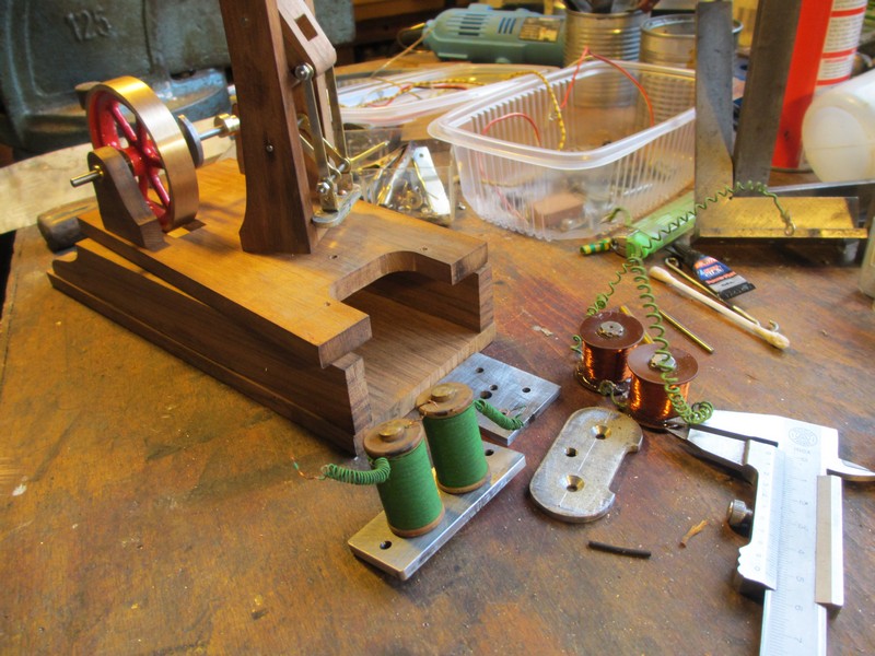 donc je me suis lancé pour changer dans un petit moteur à balancier en bois (des vieilles planches de noyer sauvées d'un bâti d'horloge vermoulu.