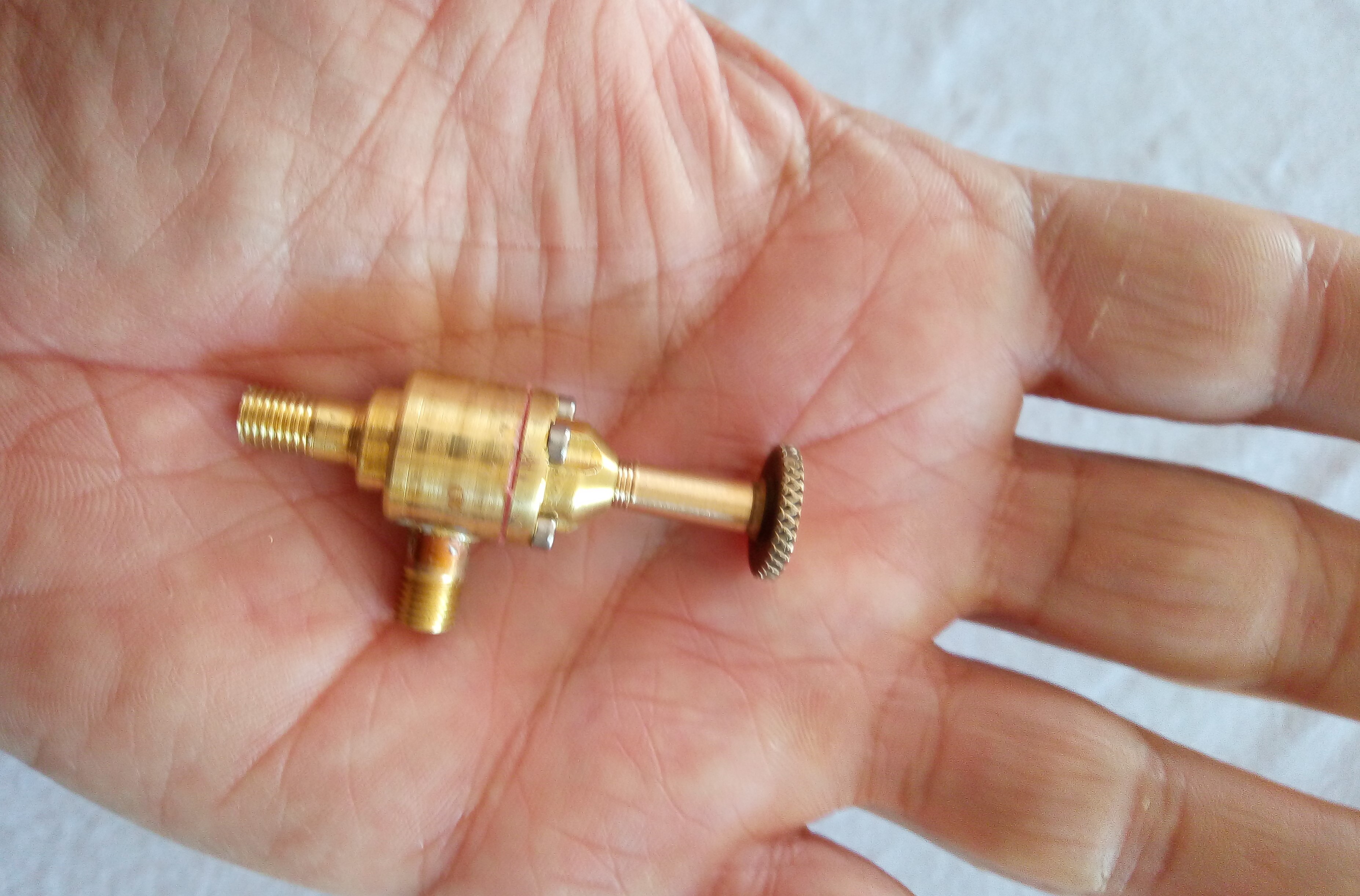 Le pointeau est une épingle en inox, la membrane en silicone de 0,5mm. Un tour de robinet déplace le pointeau de 0,1mm ce qui permet un réglage très précis et sans effort.