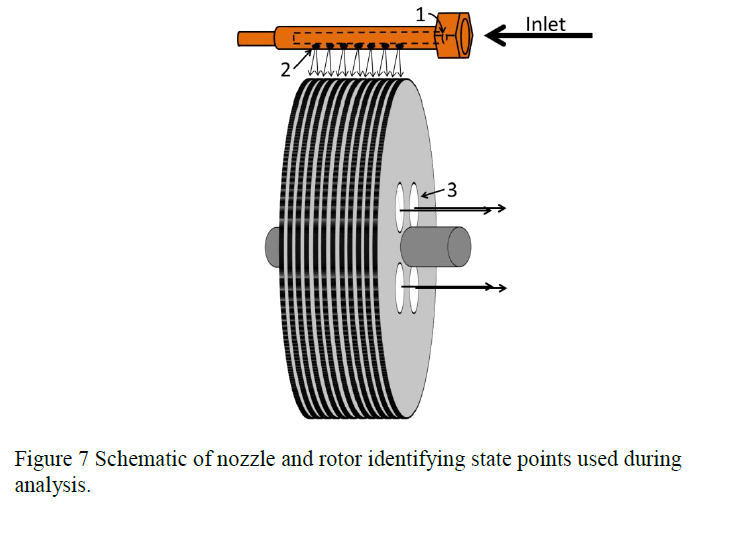 - la machine fonctionne via la viscosité du fluide (effet de couche limite) par conséquent l'état de surface doit être irréprochable et l'écartement des disques doit être de l'ordre de la couche limite : 0.2 à 0.5mm. Les disques font, en épaisseur, de l'ordre de 0.8 à 1.5mm pour les machines de laboratoire servant aux tests (diamètre rotor de 50 à 100mm)