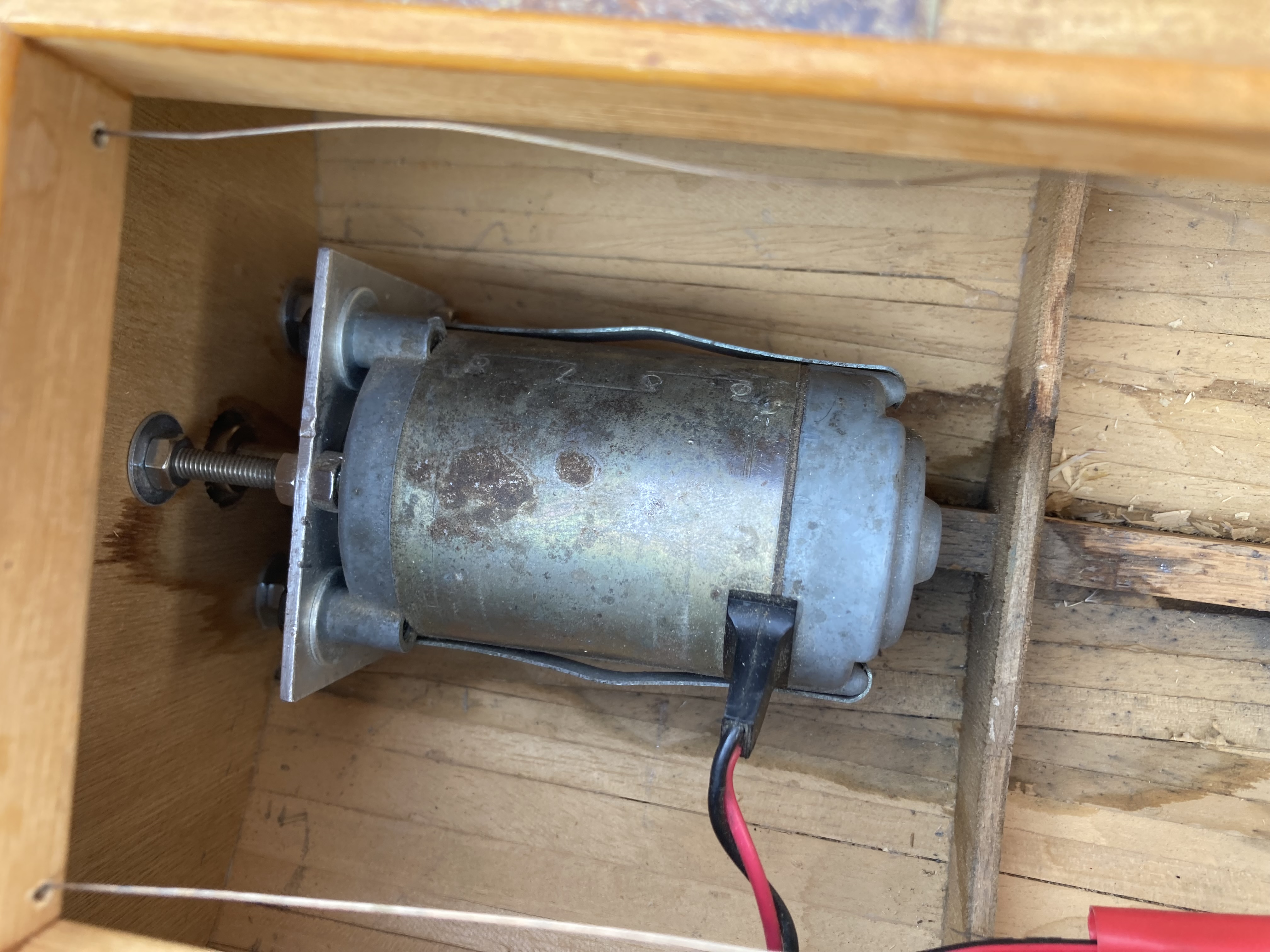 Raphaël, ici pas de KV, c’est un classique moteur 12V récupéré sur un ventilateur de voiture. La batterie d’auto est une 60Ah et je dois encore ajouter pas mal de plomb pour qu’il soit dans ses lignes. Il doit faire dans les 35kg en tout.