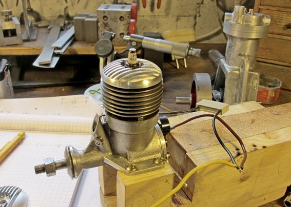 Zap : Je suis moi-même très surpris par le cylindre borgne, en acier dur, pas courant sur ces moteurs. Vraiment pas facile à faire et à roder, sans parler des mesures, il faut être sûr de ses machines. Il n'y a pas de culasse, ni de trou de vis, et je ne vois pas à quoi elle servirait. Il tourne à 4800 rpm réglé au mieux, avec une 32 x15mm; 8000 rpm me paraît hors de portée.