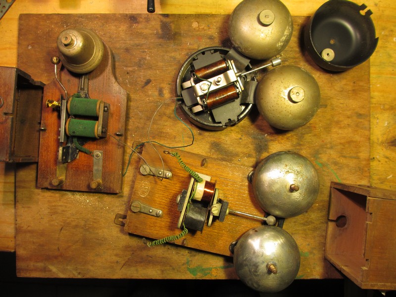 Je pense que le tout sera très vite fait, puisque je n'ai pas à faire la bobine électrique, il y a aussi de très jolies pièces pour les contacts sur ces sonnettes, mais les pas de vis ne sont pas standards.