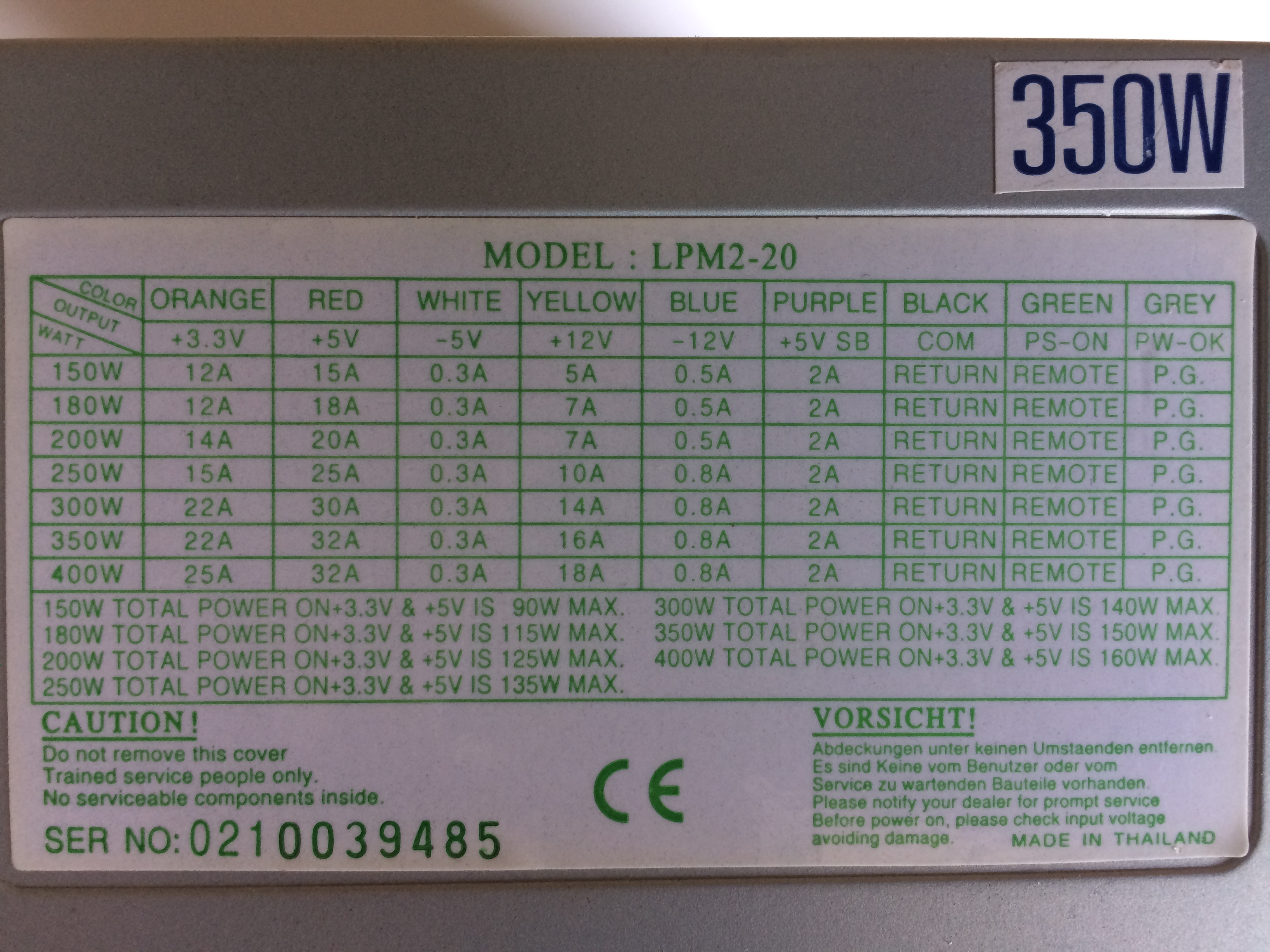 J'ai en plus diverses tensions disponibles 12V 5V 3,3V -12 -5 combinables pour faire du 24V ou autres ... :)