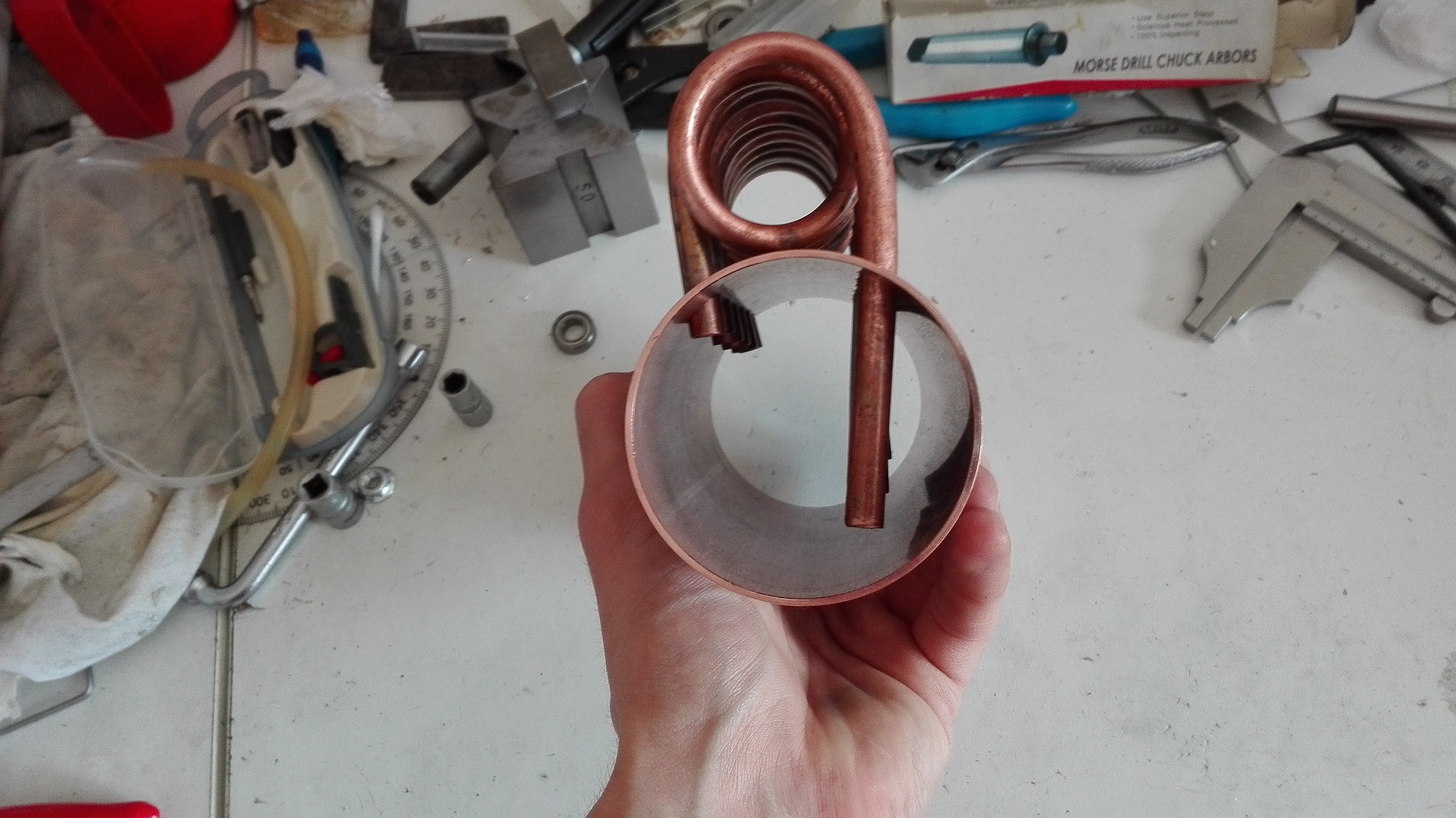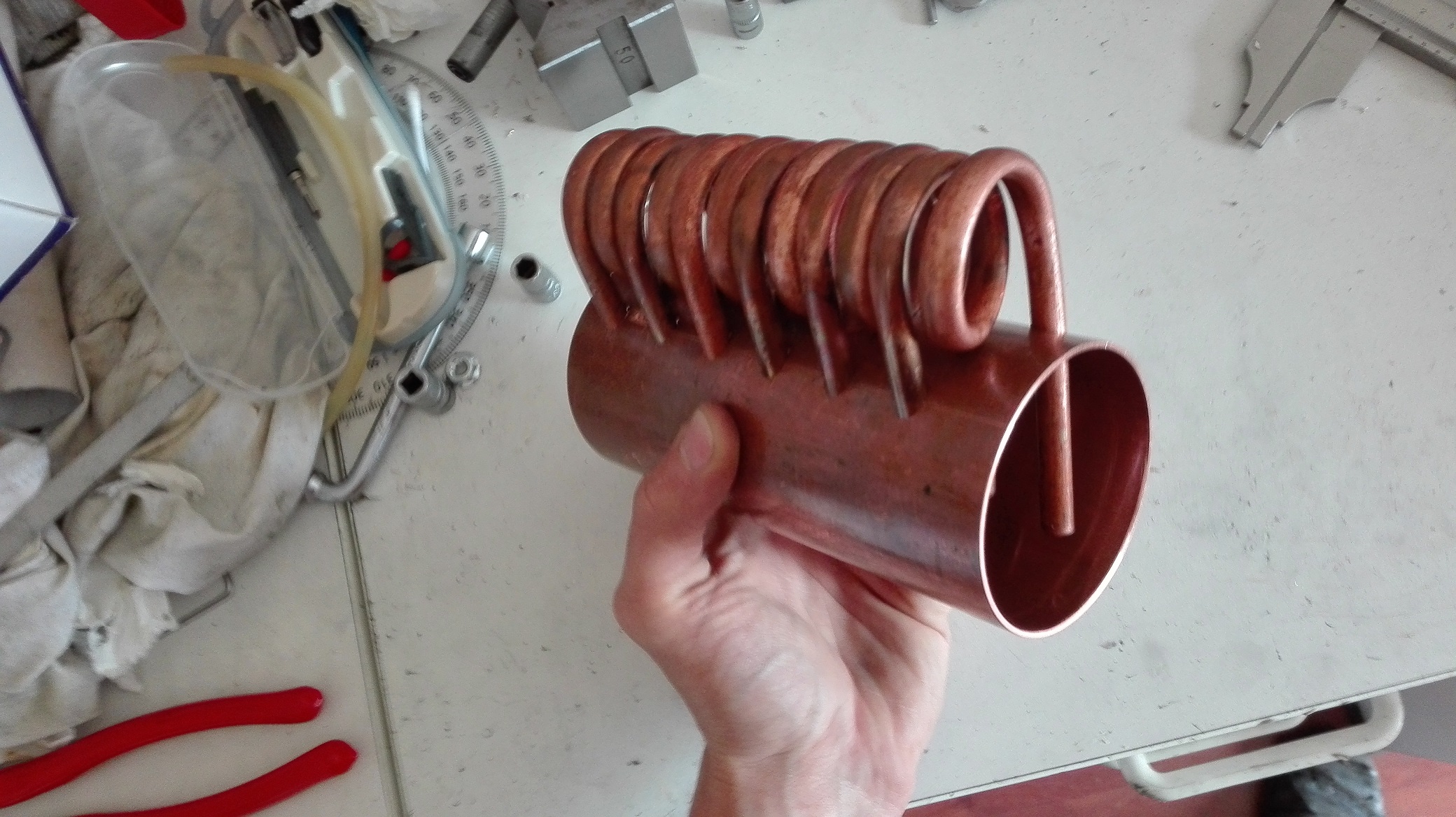 Ne met pas les viroles supérieures. Pose ta chaudière les boucles vers le haut avec les fonds déjà en place. Il faut chauffer avec une torche propane au rouge cerise entre 700 et 750°C (si brasure Ag 40%)
