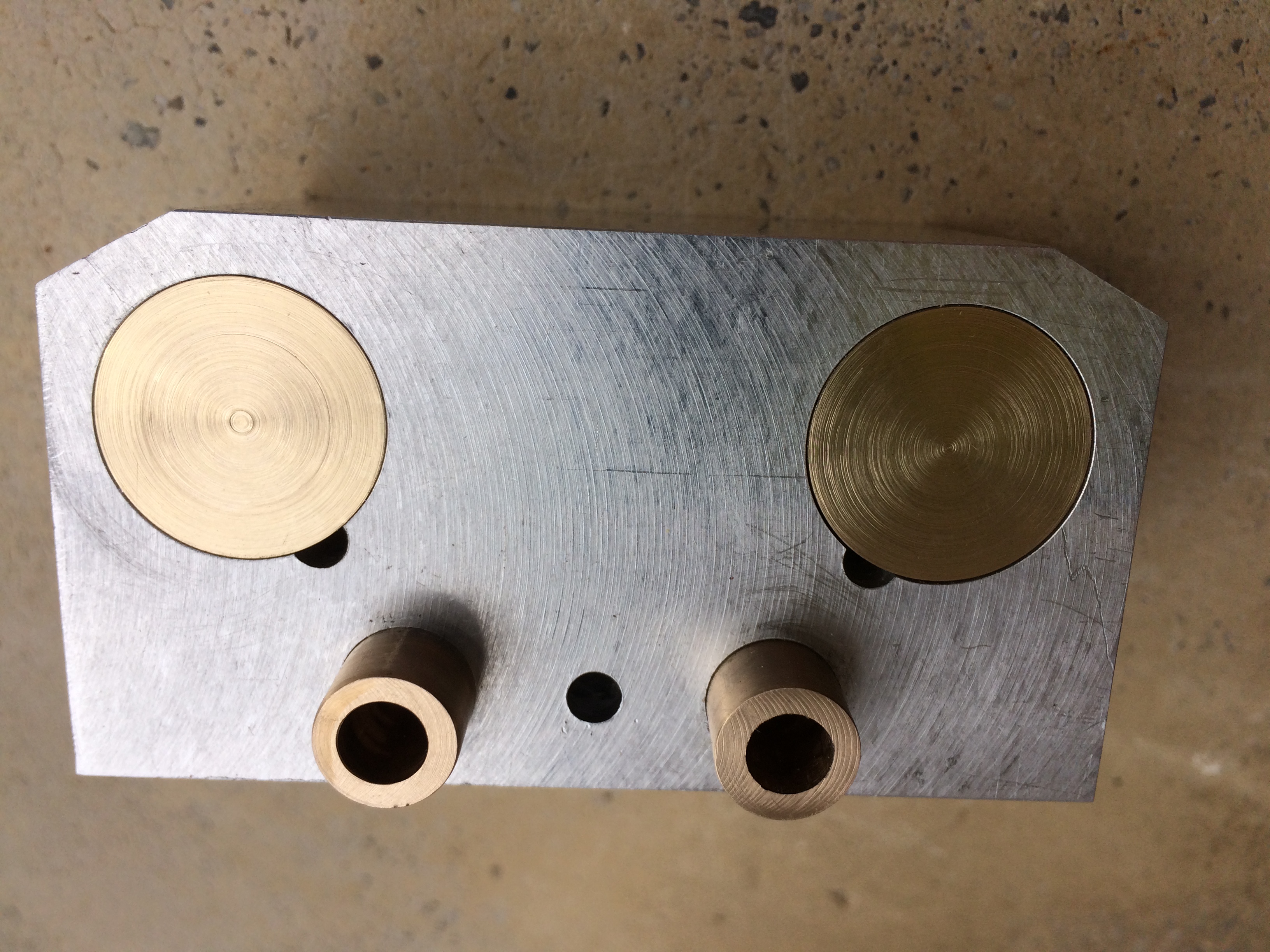 On peut voir les transferts dans l'alésage (à gauche il n'est pas encore rattaché au cylindre qui n'est qu'ébauché):