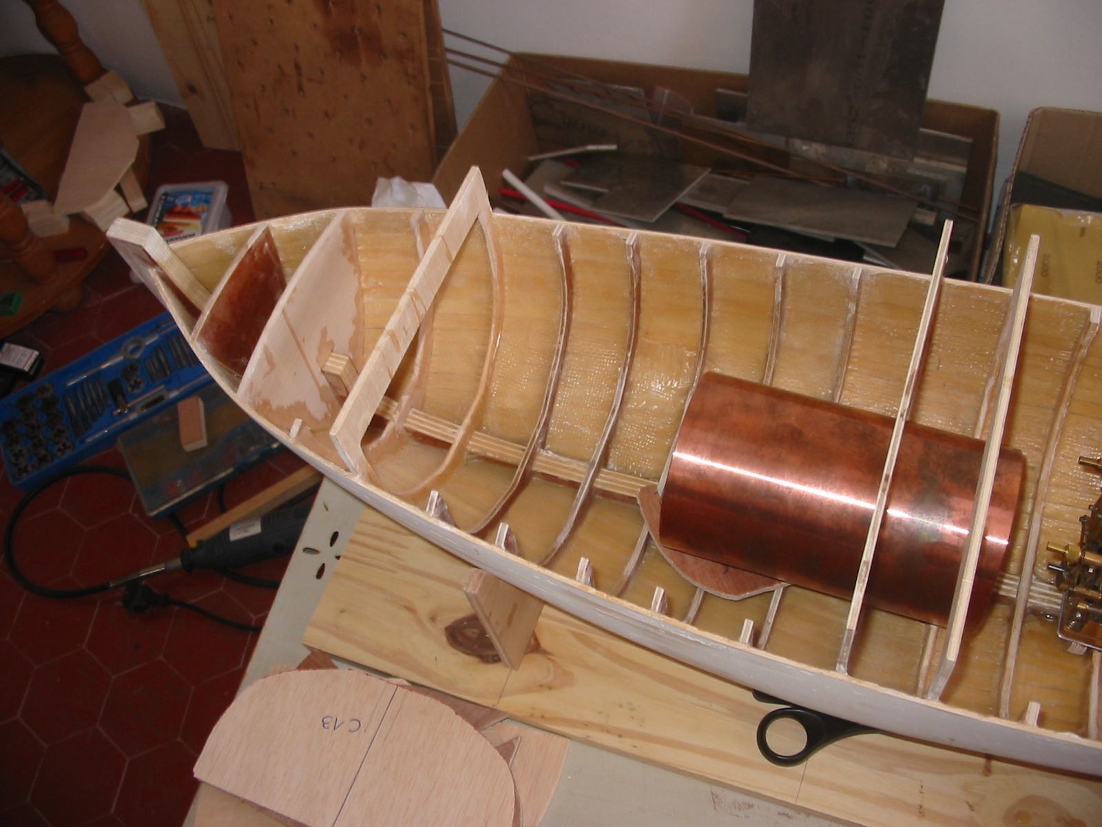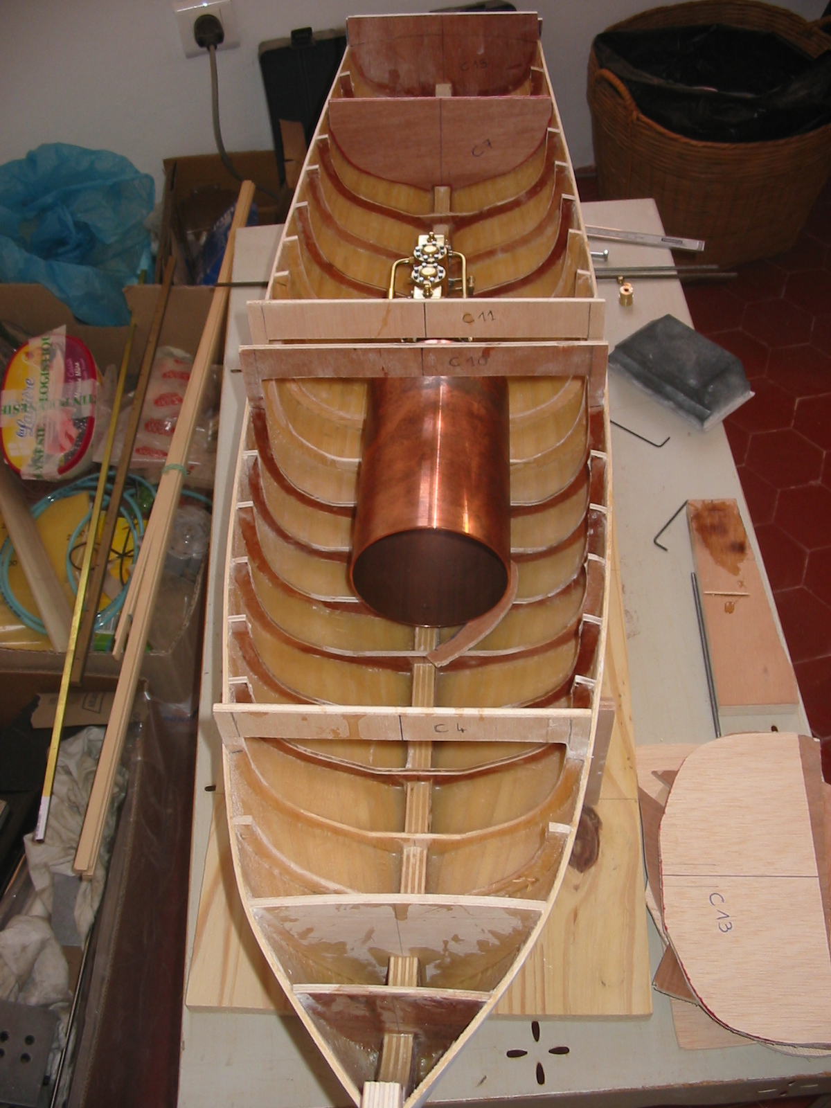Quelques photos du début de sa construction. Je souhaiterais retrouver le plan de cette chaloupe, pour pouvoir bien disposer la chaudière, le tank à gaz, etc.. et avoir vos conseils sur le sujet.