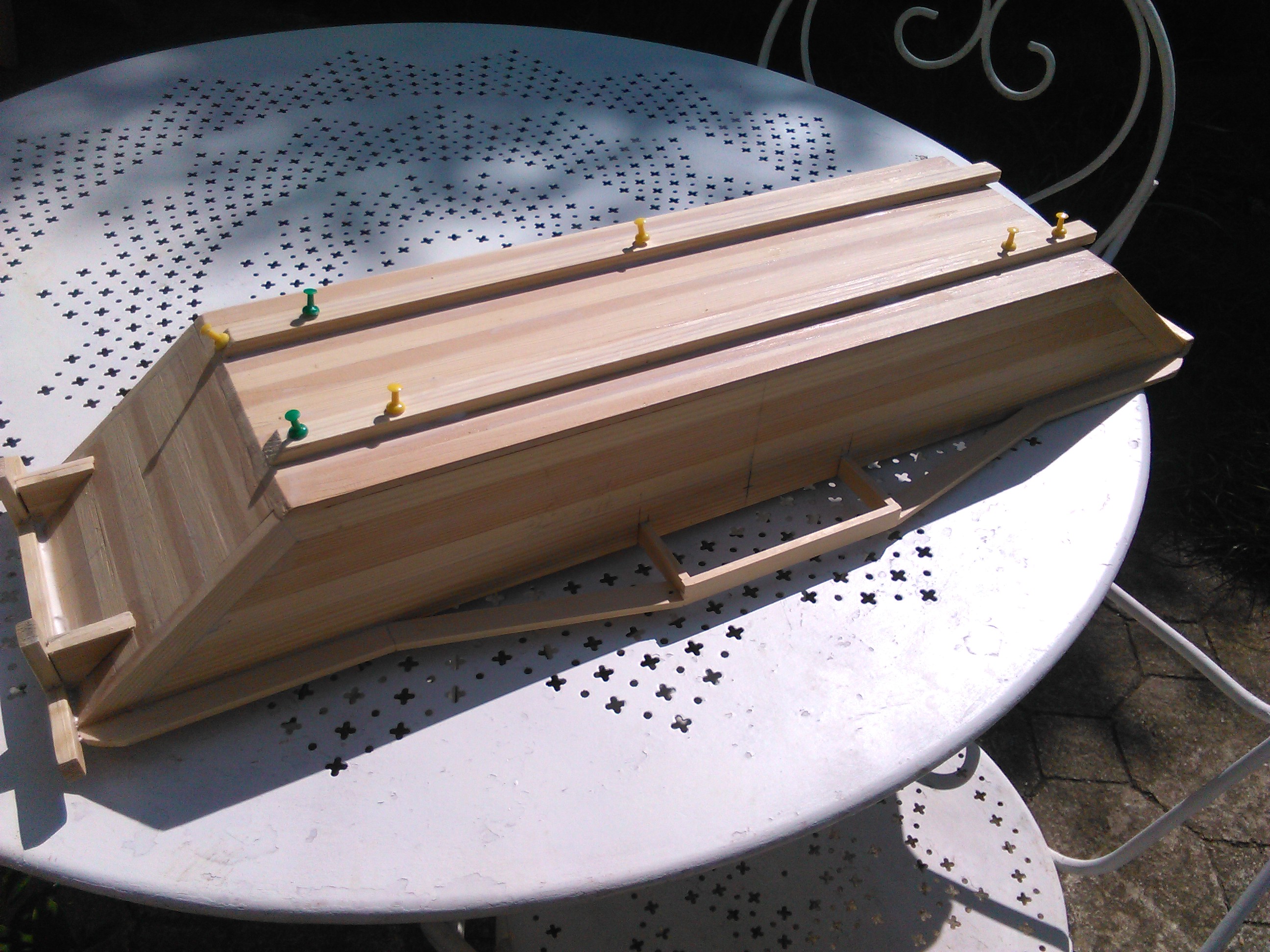 pour le moment c est croquis et épures en carton et allumettes notamment pour les roues ,qui seront réalisées en une autre matière
