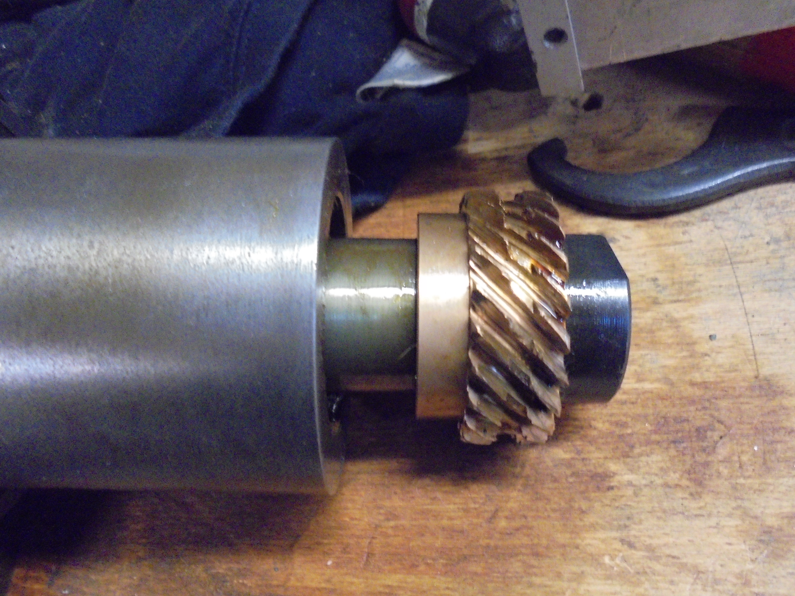apparemment la tête a tourné mal serrée le pignon en bronze ( fait office de fusible ? ) a des dents ébréchées