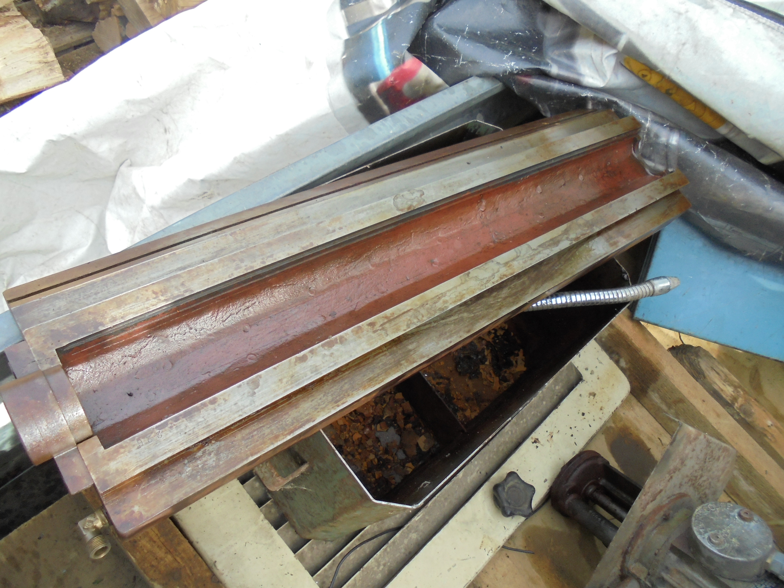 la table et démontée , le bac et la pompe de graissage