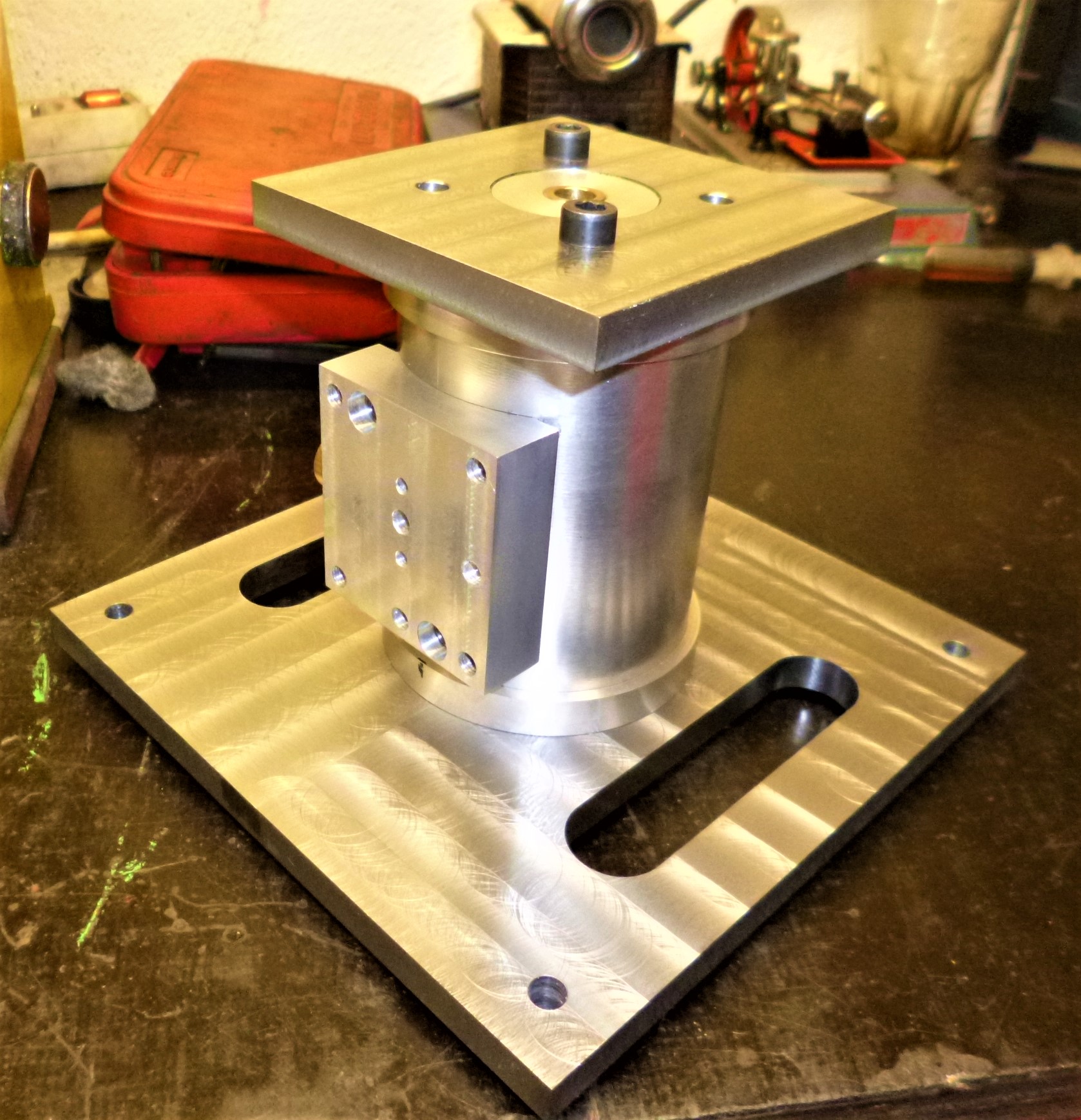 Prochaine étape, les deux guides de bielle pour savoir où usiner le passage de bielle vers la manivelle, la plaque support de cylindre fait quand-même 170 sur 170 mm en 10 mm et je vais devoir la surfacer aussi un petit coup