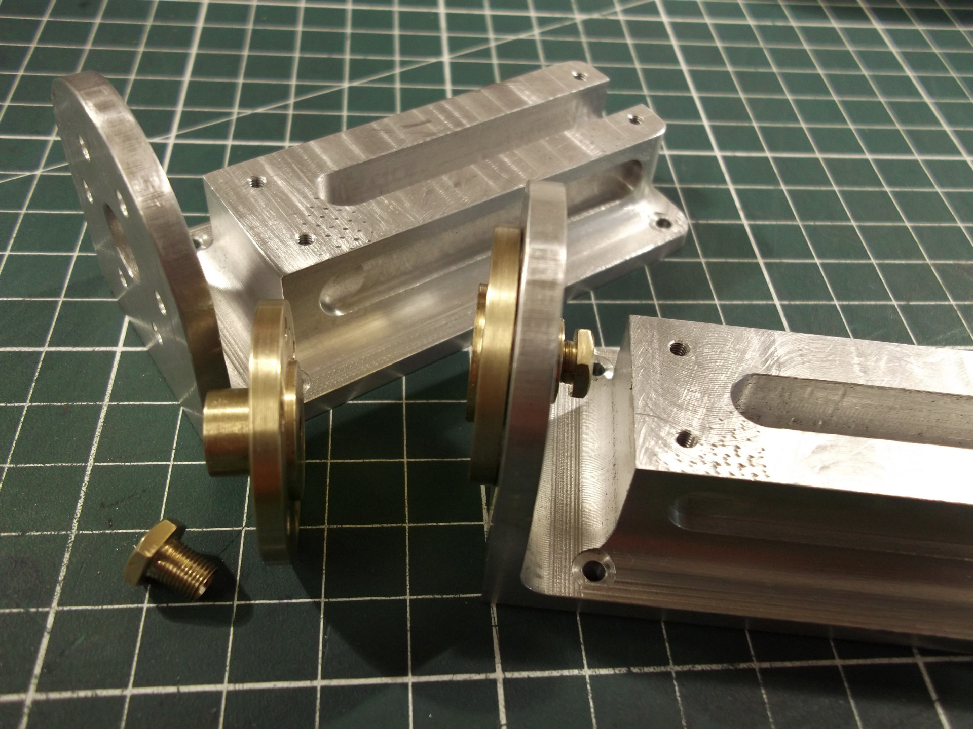 La suite avec les supports de cylindre et une présentation a blanc pour voir si tout va bien, ça se présente bien, je vais poursuivre l'usinage, ça avance doucement mais surement