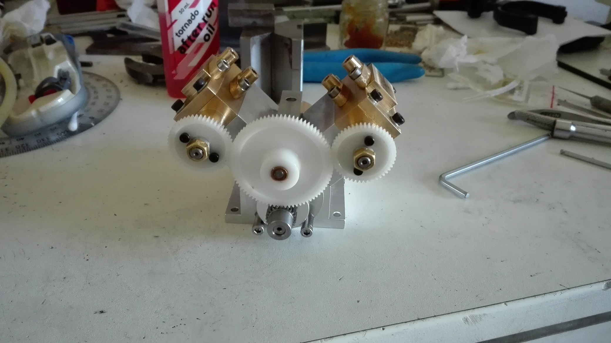 Alors j'ai fini le moteur hier !! Donc j'ai réussi à tester vraiment vite fait en mettant de la durite de moteur thermique sur les brides vapeur avec un té. Un coup de soufflette et.....et..... ça marche pas