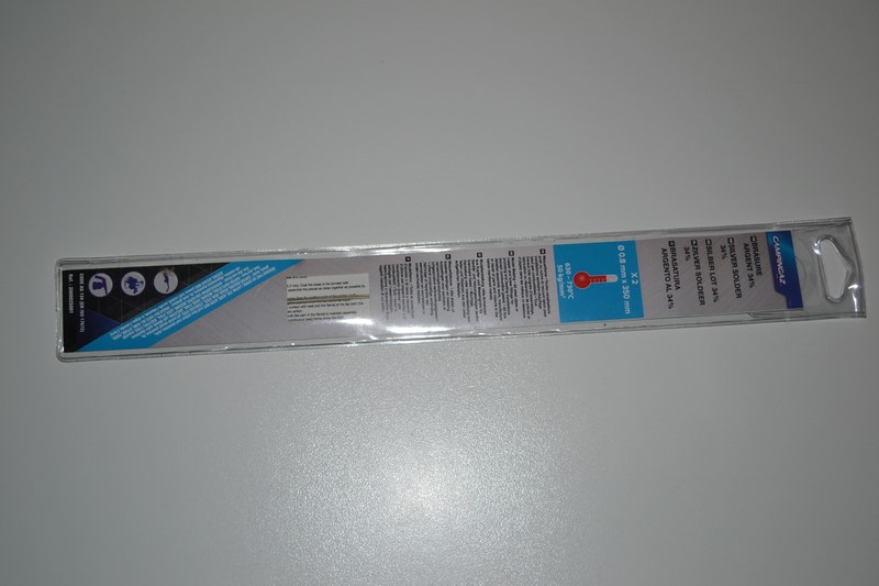 il y a quand même un léger problème car après ouverture les baguettes ne font que 250mm de longueur et 0.75mm de diamètre ce qui est très loin des indications fournies et qui me permets de penser que la teneur en argent 34% est peut être aussi surestimée mais difficilement démontrable.