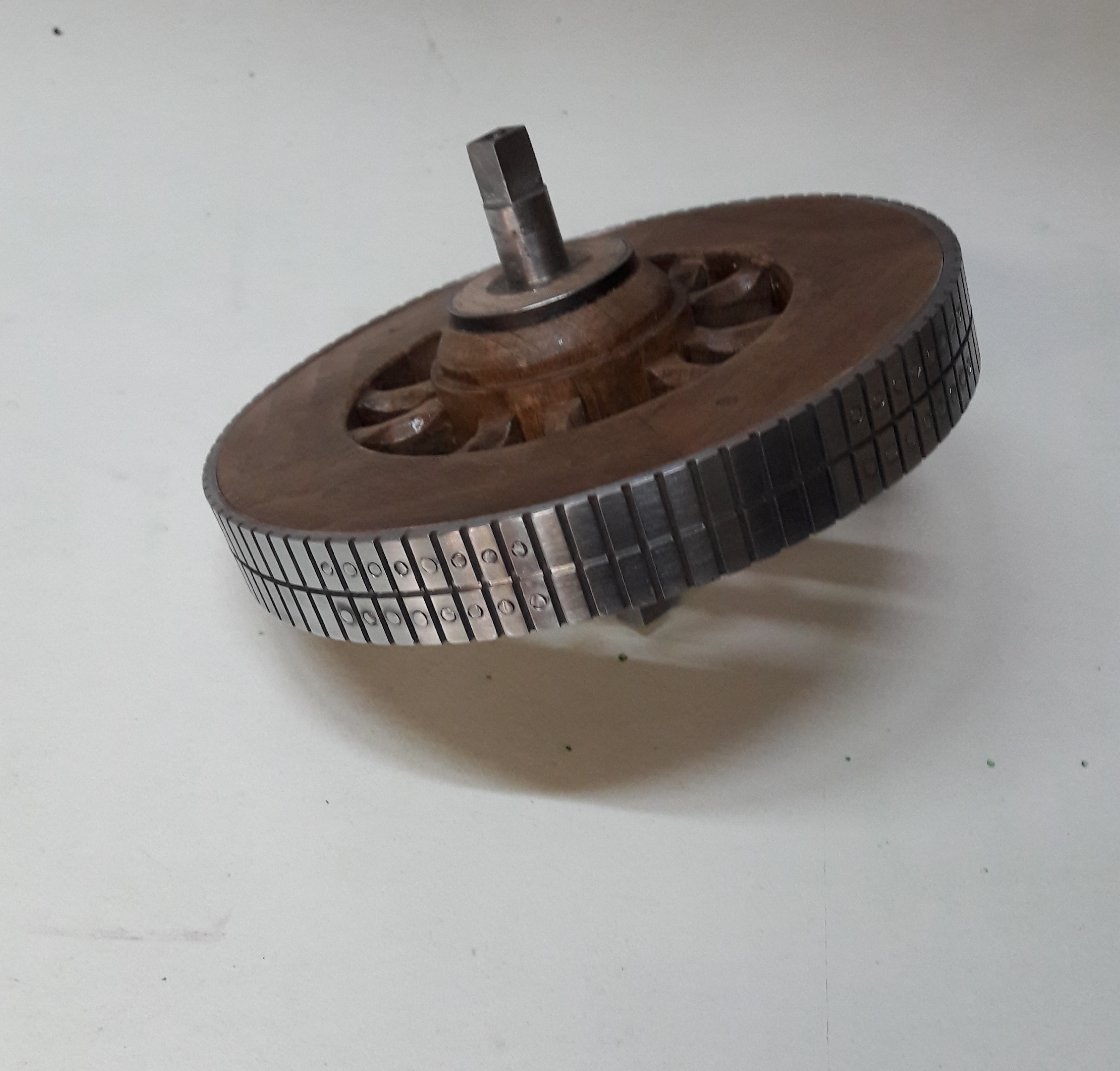 le moyeux avec sont trou fait avec une broche maison le cerclage la roue finies