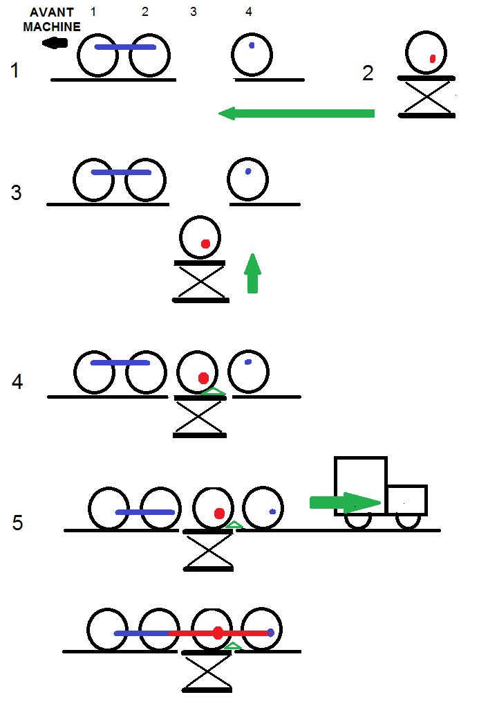 Pour répondre à Raphael, voici un croquis des différentes manipulations à faire pour aligner les manetons de roues dans le but de monter les bielles d'accouplement. Les anciens avaient des outillages que nous n'avons plus