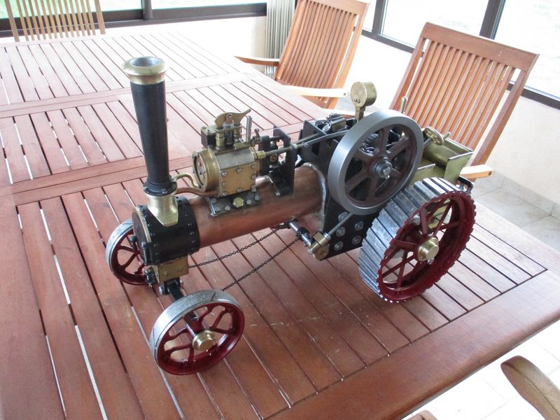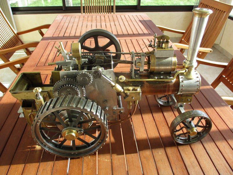 En regardant le plan, l'échelle est d'environ 1:9, soit entre une loco 3.5" et 5"( en voie normale), il lui faudrait donc une surface de chauffe du même ordre et probablement aussi une chauffe charbon.