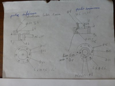voila voila ,parler de plans serait prétentieux disons plutôt dessins. Le montage fonctionne pour des pressions de 1 à 3,5 bars pour des pressions différentes il faut adapter le ressort, ça m'a pris beaucoup de temps pour trouver le bon.
