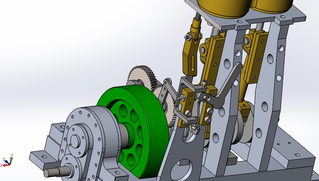 Pour le déport de l'axe de commande des bielles des tiroirs pas de soucis de coincement, car les paliers sont montés sur roulements et les efforts engendrés ne sont pas conséquents.