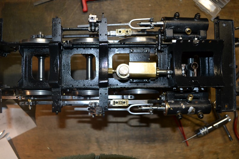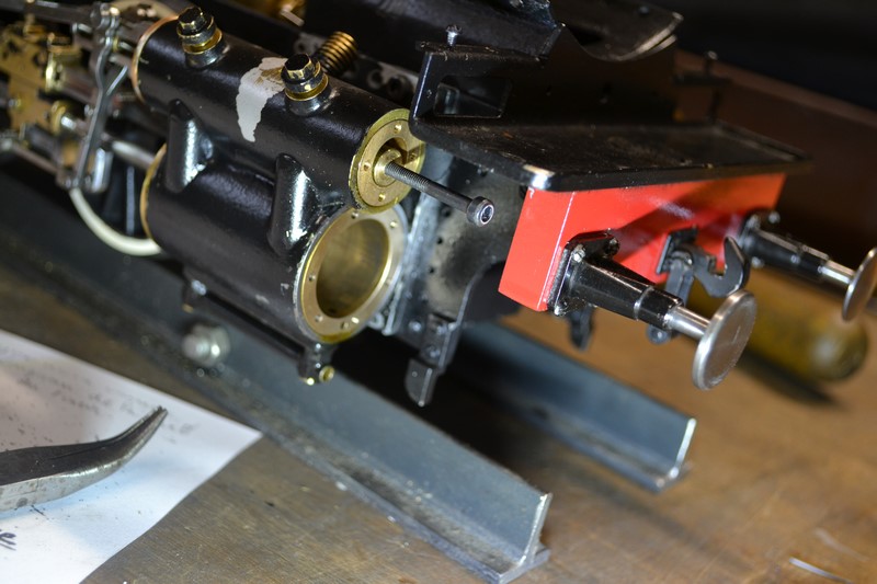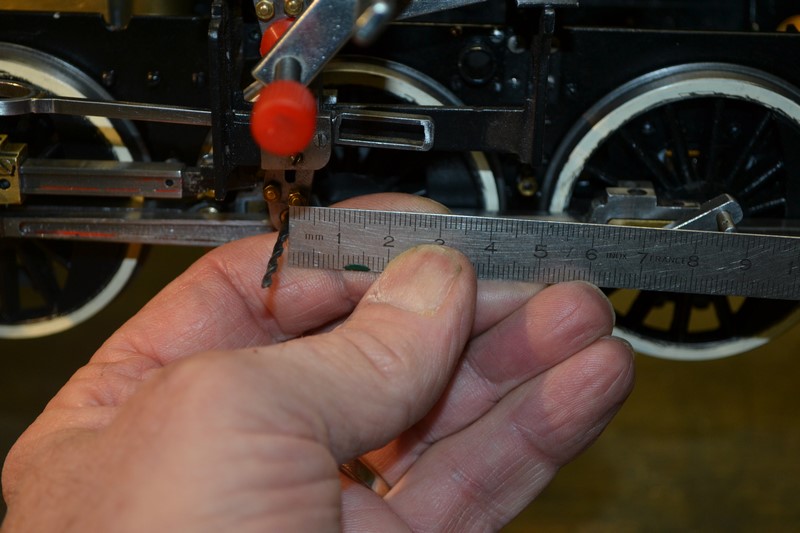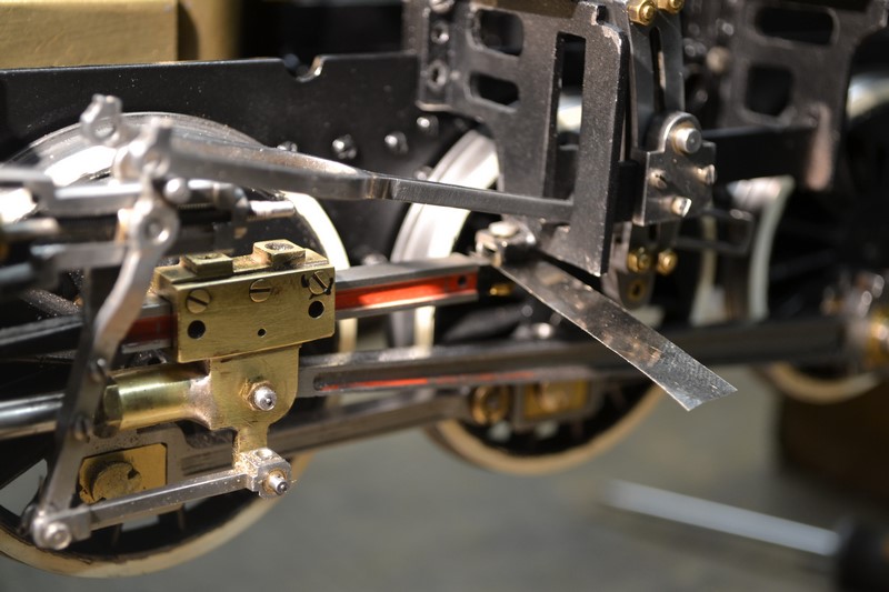 une petite patte métallique fixée sur une partie du châssis va permettre de bloquer la coulisse comme dans la méthode de réglage du tiroir de manière à ce que la bielle de commande du tiroir puisse se déplacer de haut en bas de la coulisse sans déplacement du tiroir.