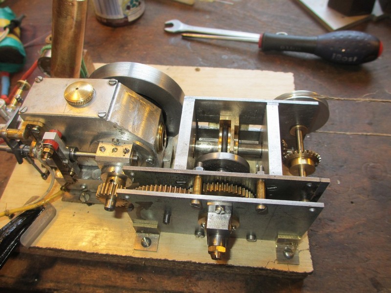 je vois une réduction finale de la vitesse du moteur de 10-15 fois, ce qui devrait permettre une vitesse de 300-400 rpm soit avec le dia des roues une vitesse de 2 km/h maxi, ce genre de loco se traîne sur les rails.