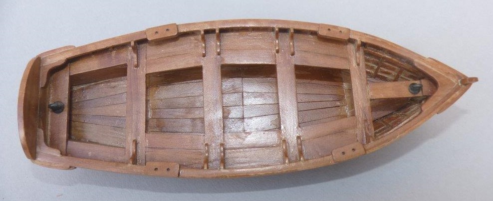 Les dernières photos montrent le petit canot de service, il sera peut-être peint comme le vrai mais cela cachera un peu le travail du bordé..............