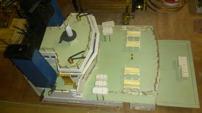 La tour de contrôle: Les grues à finir: Les barques fini: voici la première couche de la fibre de verre: