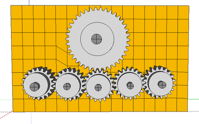 - si l'axe supérieur correspond à celui du moteur d'entraînement, tu multiplies la vitesse des axes d'hélice (x2). A moins d'avoir un moteur tournant lentement et avec beaucoup de couple, c'est plutôt le contraire qui se fait d'habitude, les moteurs tournant généralement trop vite pour des hélices standard. Il vaut faire tourner le moteur à la vitesse pour lequel il est conçu sinon il chauffe et vide les batteries à vitesse grand V.