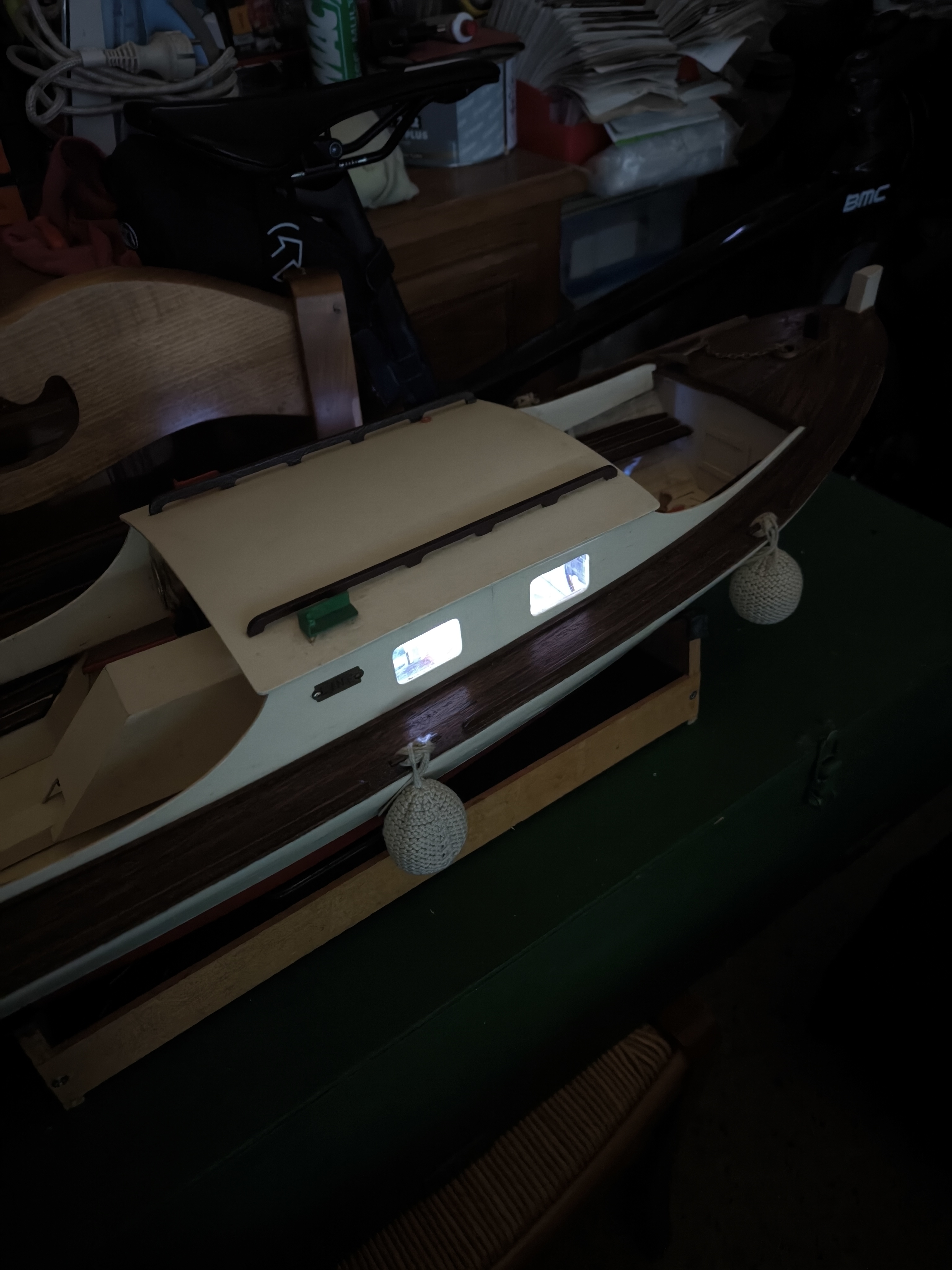 J'ai mis de la résine suite à quelques fuites dans la coque + peinture et j'ai mis en service les leds extérieur et intérieur.