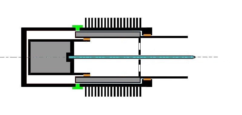 Petite question aux mecaniciens: un projet (en quelque sorte un béta inversé) selon le schéma joint est-il réalisable et mécaniquement fiable (en vert bague filetée de liaison en inox, en jaune joint en graphite) ?