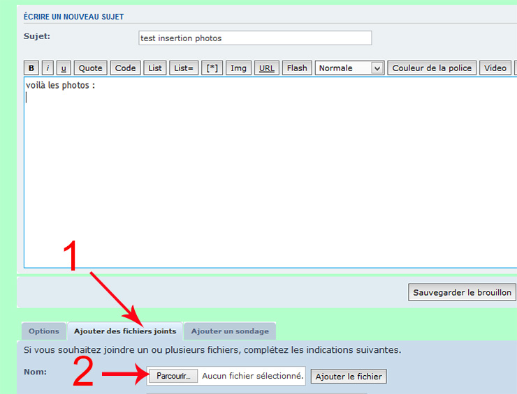 1 - cliquez au bas du message sur "Ajouter des fichiers joints"