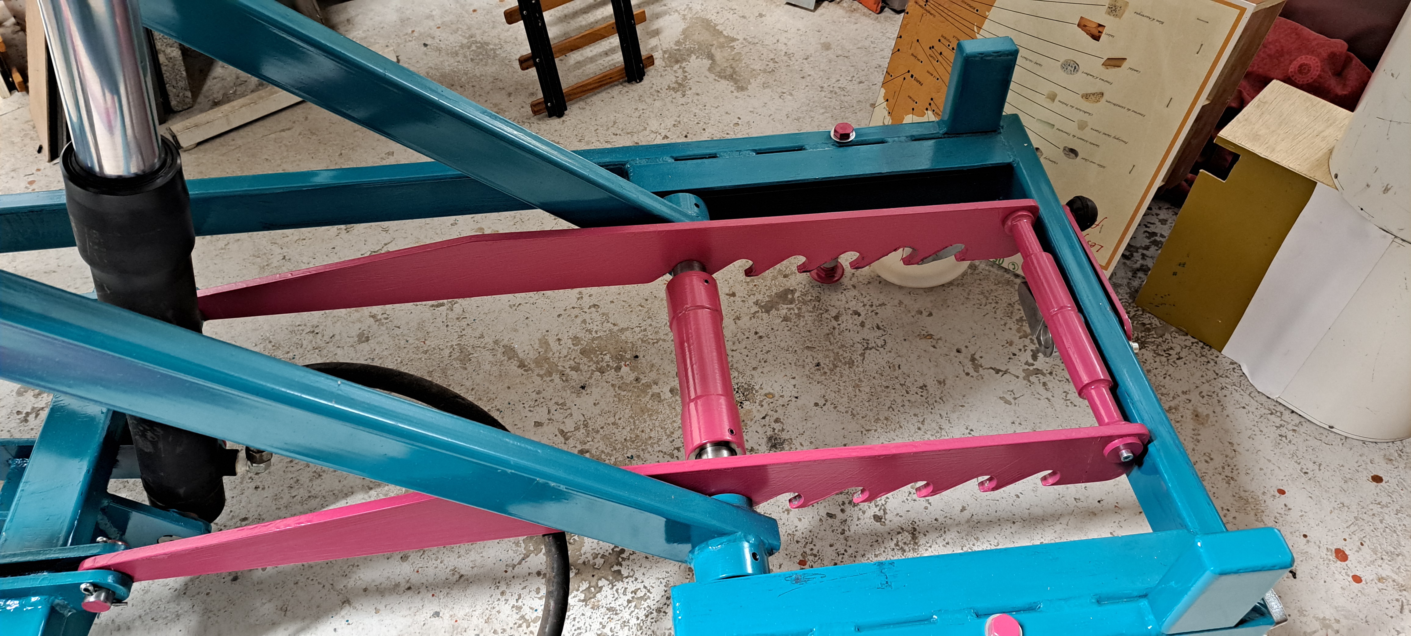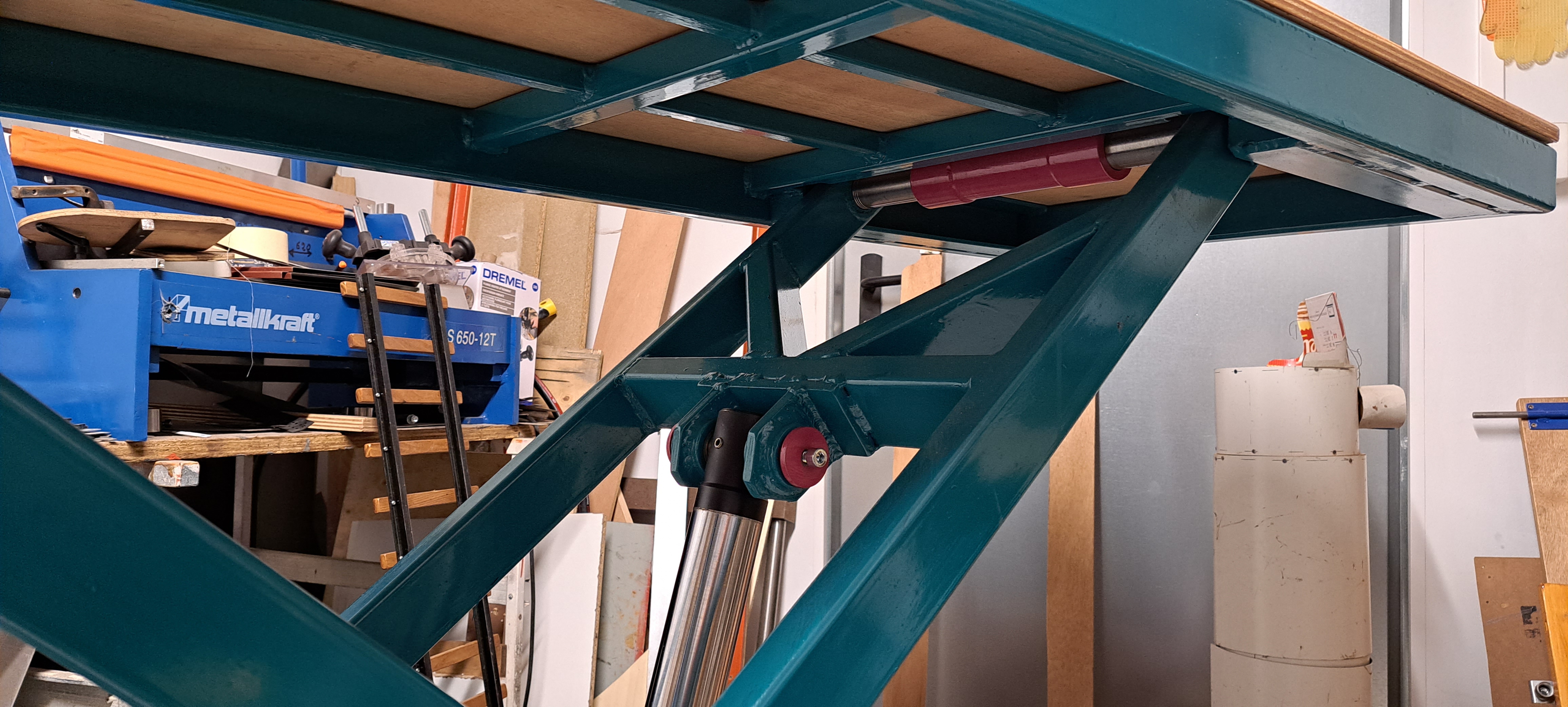 et je voulais que quand la table est au plus haut soit 1m30 je ne voulais pas avoir la crainte de voir tout ça instable et de voir des années de travail parterre .