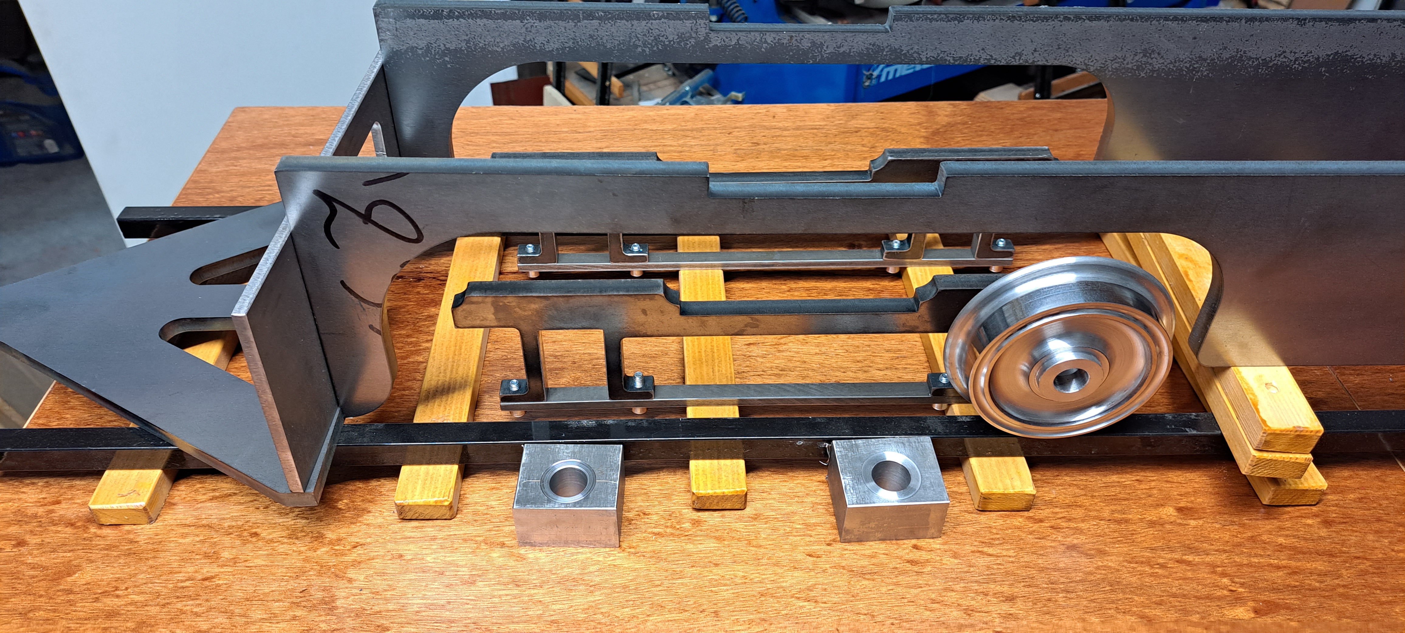 Comme je suis au début de la construction d une nouvelle loco en 7 ¼ , il m'a fallu calculer, dessiner et réaliser une table capable de supporter 600 kg de charge .
