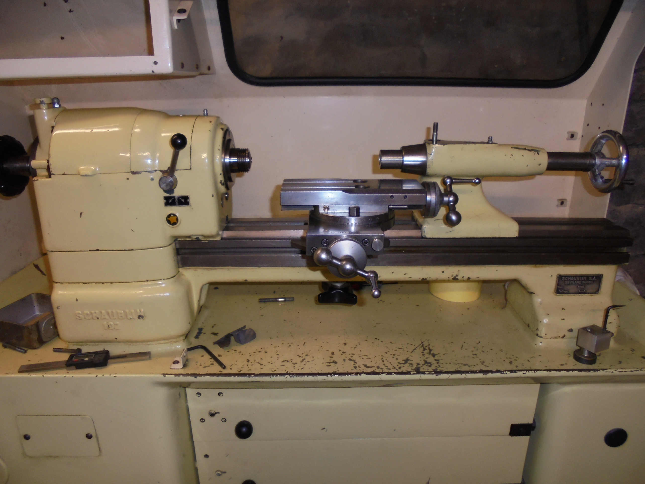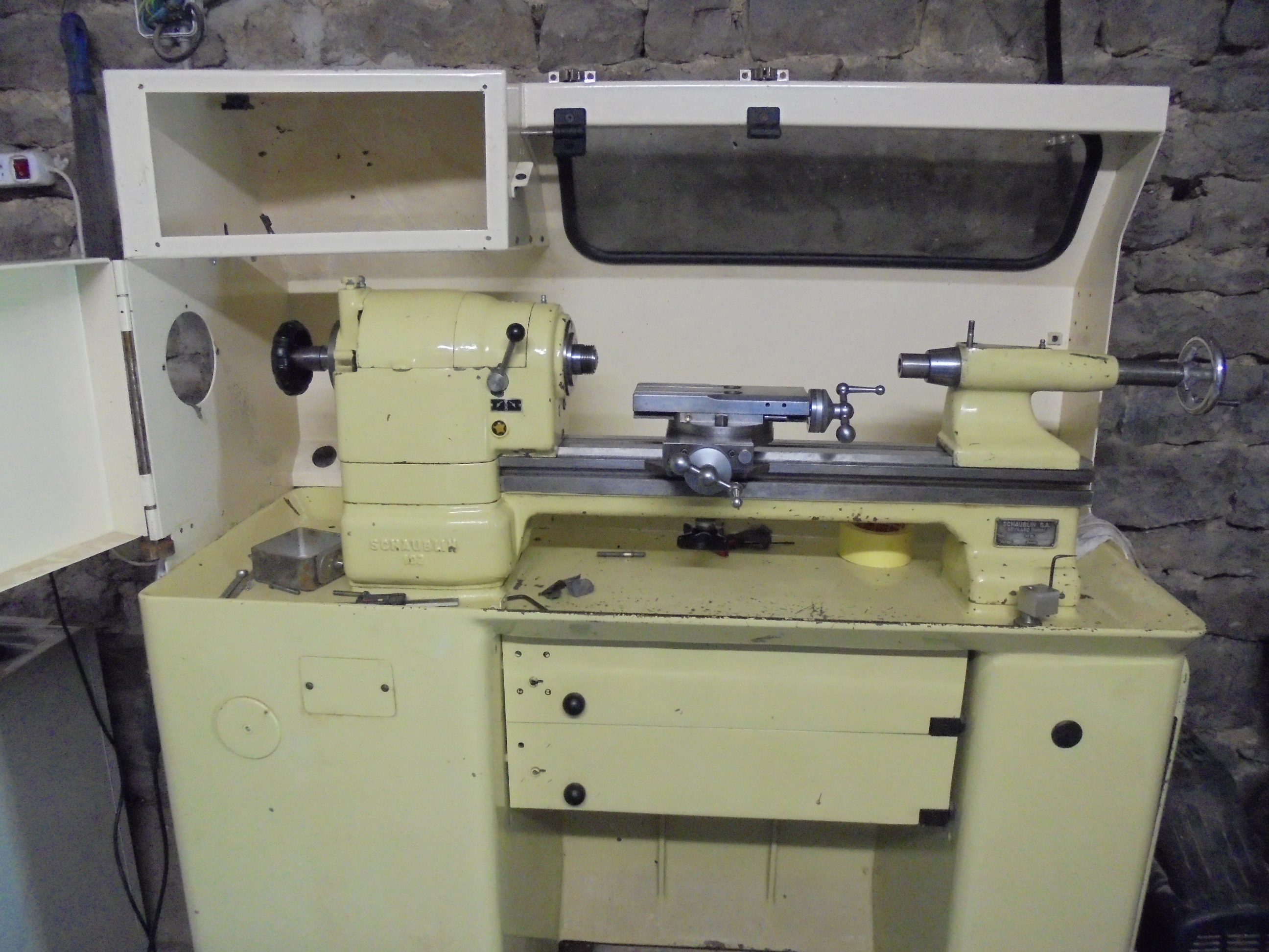 tour schaublin 102 en place en attente de branchement moteur