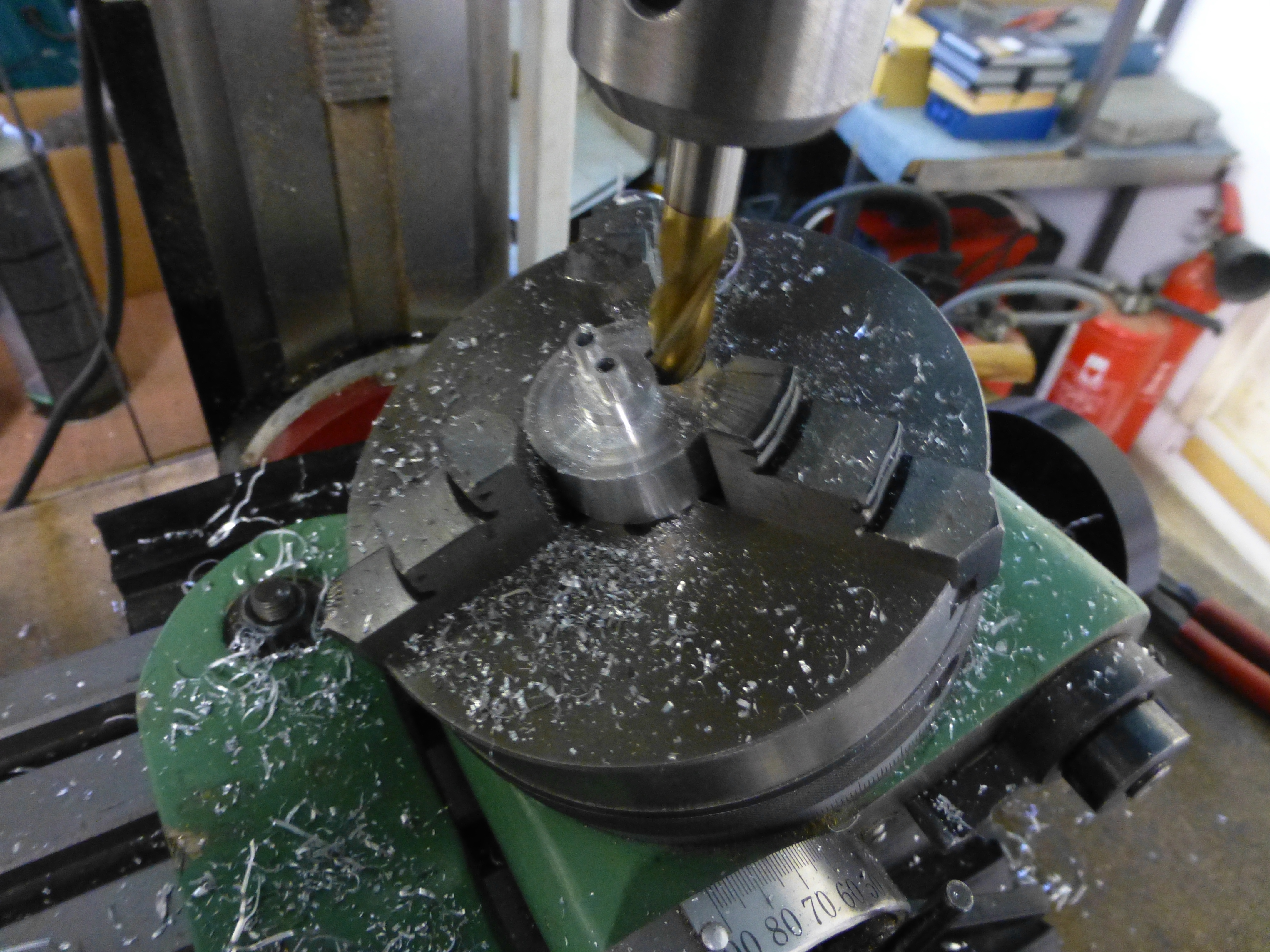 Je faisais allusion au support mandrin de tour de couleur vert.vaperigord a écrit : ↑ven. 8 déc. 2023 11:24C'est tout simplement le mandrin d'origine de la fraiseuse, la table rotative n'étant pas trop épaisse, ça passe.