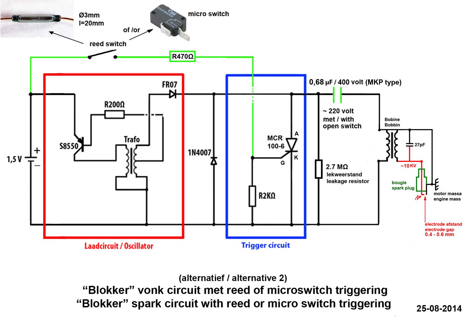 Est-ce que la distance entre électrodes est correcte ? As-tu essayé le montage en faisant le contact (déclenchement) à la main ?