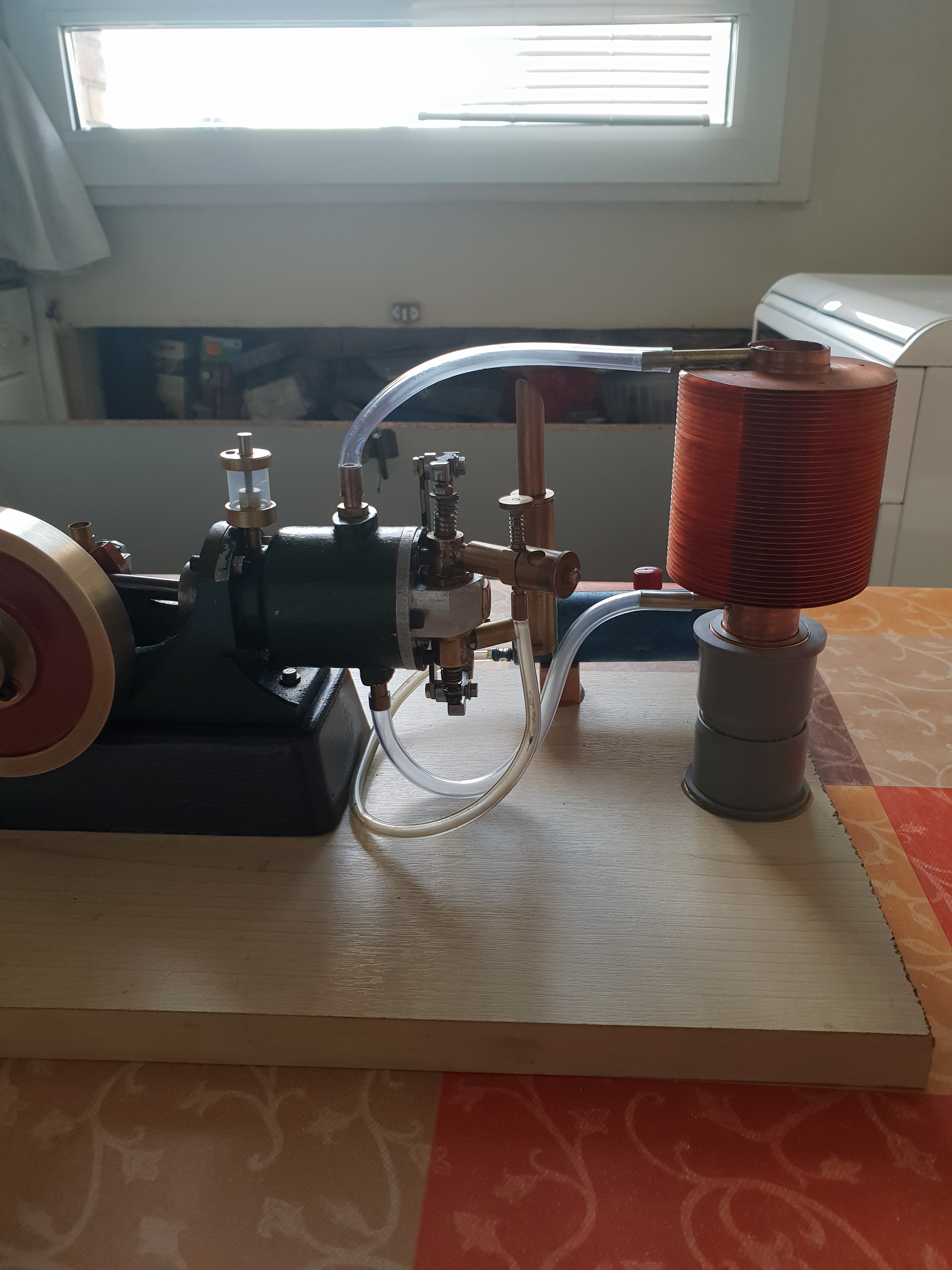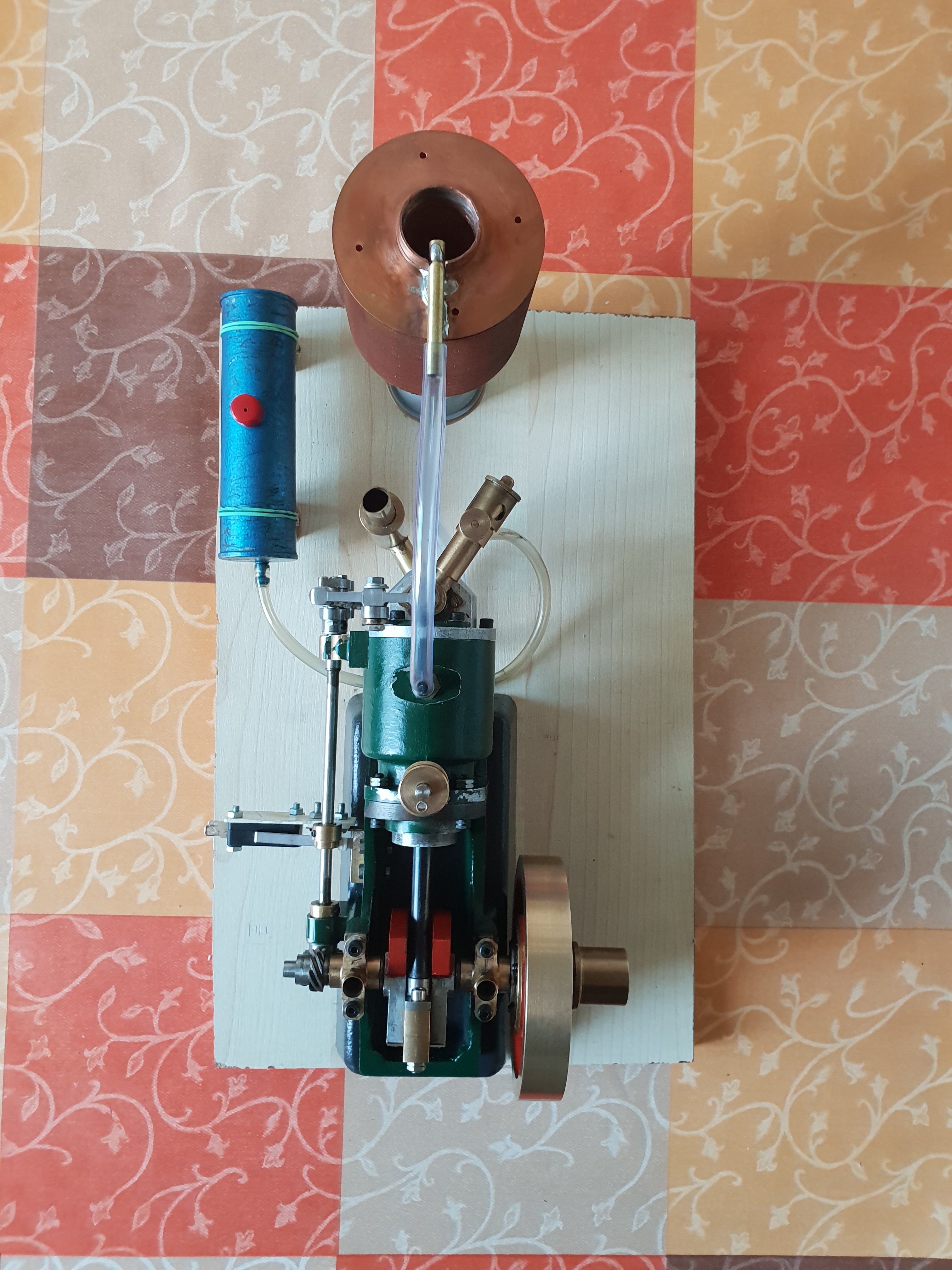 C'est mon projet en cours, je m'amuse super bien avec ce truc, surtout depuis que ça marche ! Mais il n'a pas ( encore ?) la régulation hit & miss sur l'échappement, seulement la soupape d'admission auto et ce système à cliquet pour ouvrir l'échappement un tour sur 2.