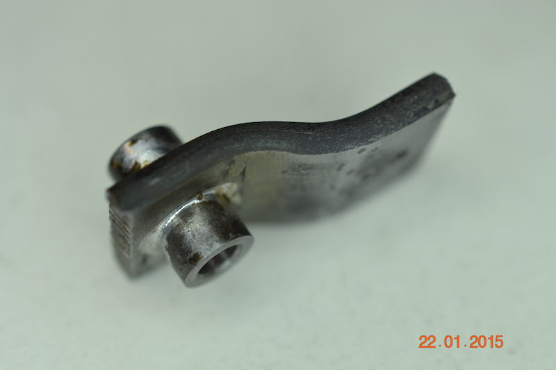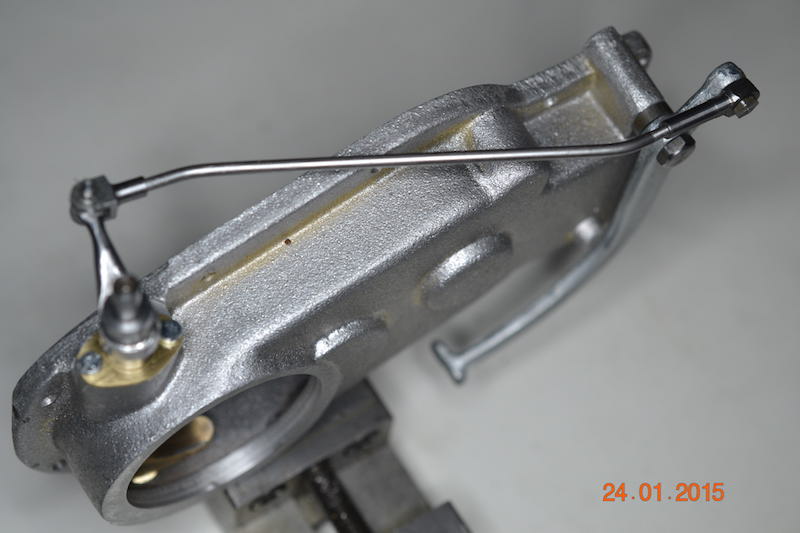 (111 à 118) Bras Pitman.Tirée d’un plat en fer, l’usinage à la machine-outil ne représente que quelques minutes de travail. Tout le reste a été fait au touret à meuler, lime bâtarde et papier émeris. (mes doigts s'en souviennent)