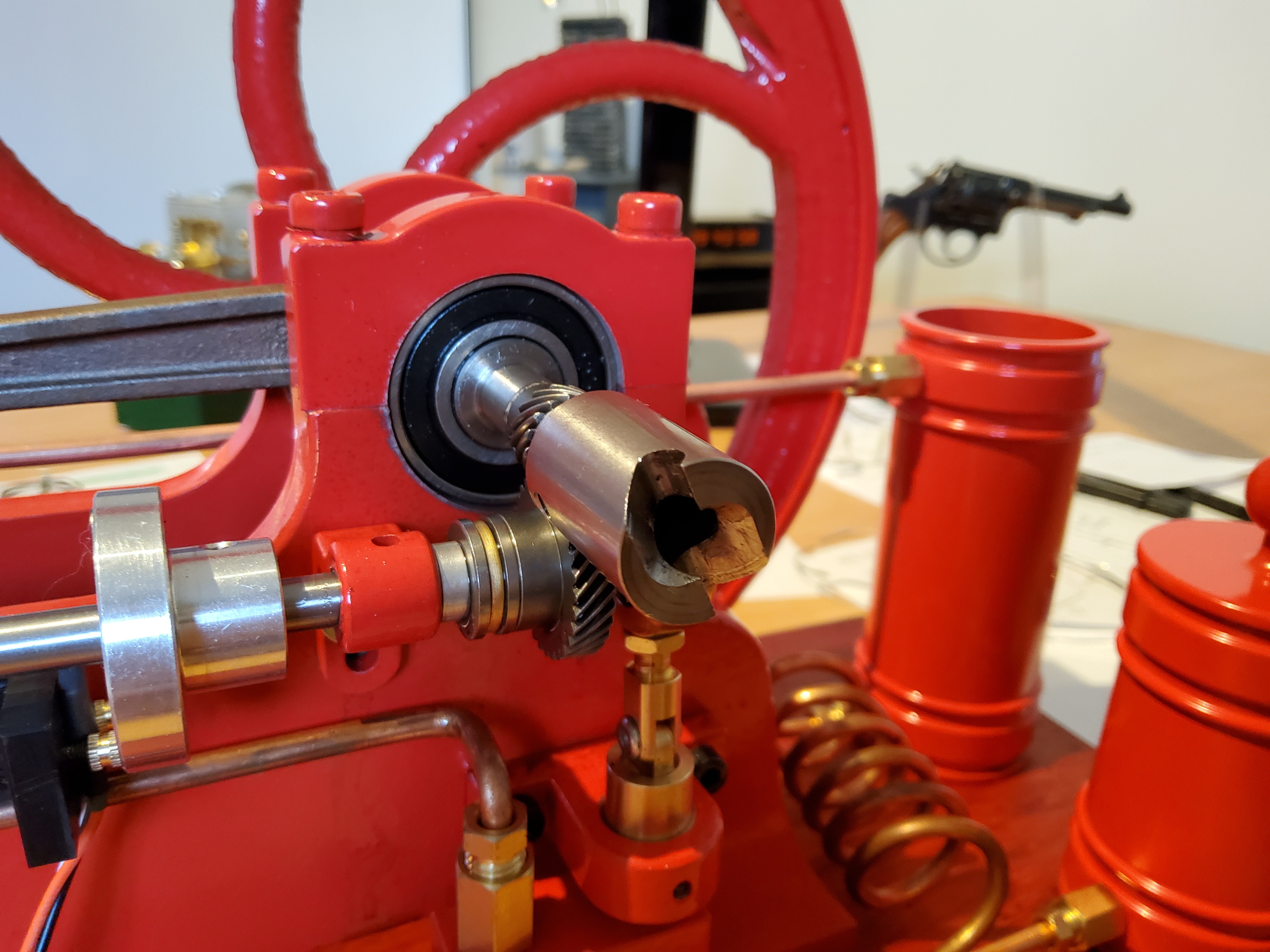 Des investigations aimant en main prouvent par ailleurs que le bâti est en alliage non magnétique tandis que la bielle est en acier. J’aurais parié pour l’inverse !